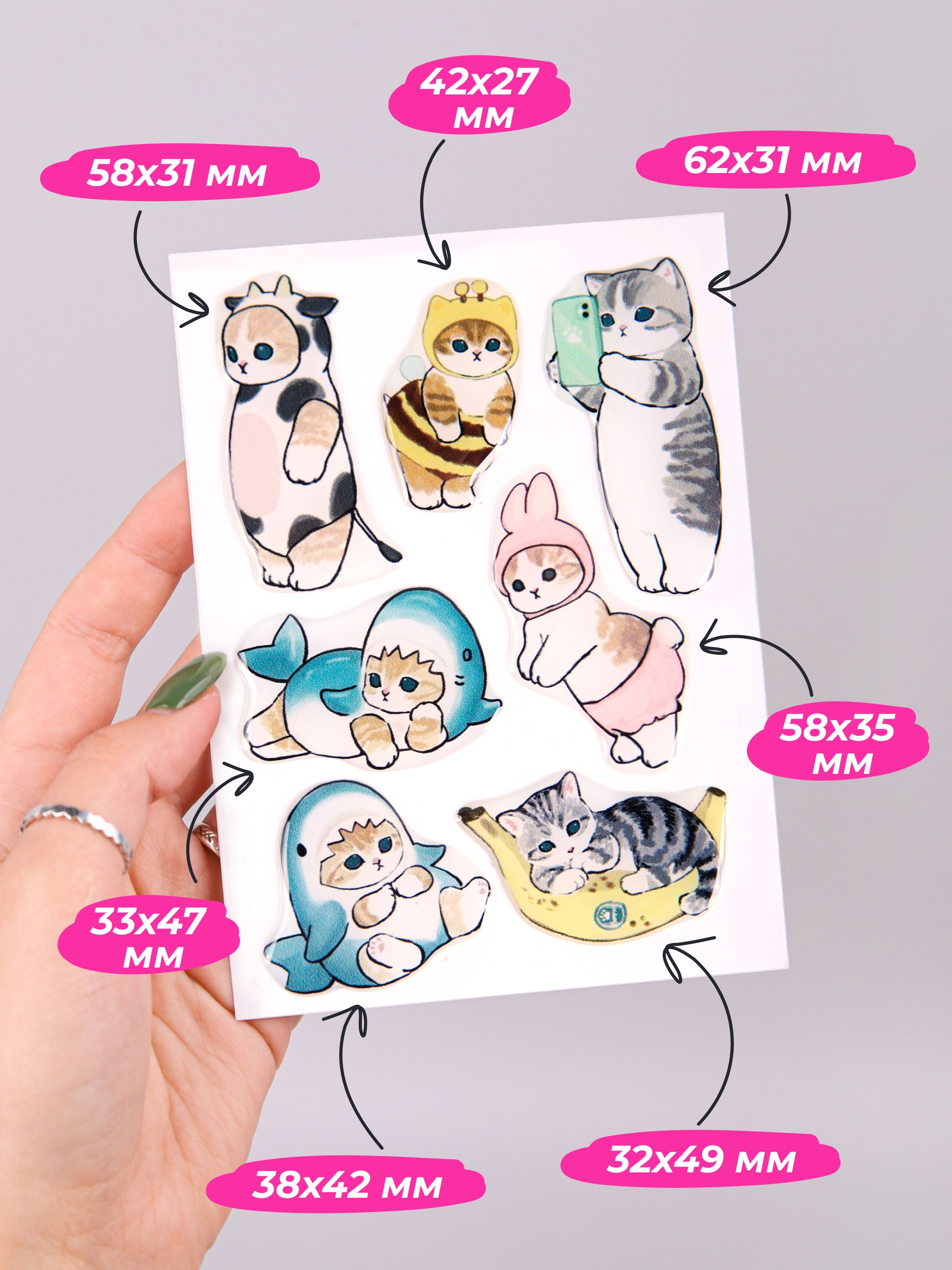 Оригинальные декоративные стикеры на телефон 3d украсят ваш телефон и ноутбук, а также прекрасно дополнят другие гладкие поверхности. Благодаря 3d наклейкам с изображениями сердец и романтики, ваш телефон будет выглядеть уникально и необыкновенно. Наклейки мемные коты ручной работы высокого качества, надежно приклеиваются, не рвутся и не выцветают. Стикеры и наклейки на клейкой основе не оставляют следов. Объемные стикеры могут защитить камеру вашего телефона от соприкосновения с поверхностью, от царапин и сколов при падении. Набор многоразовых наклеек из эпоксидной смолы состоит из 12 стикеров, на которых изображены котики мемы. Эти яркие и необычные аксессуары для смартфона вызовут восторг мальчиков и девочек, подростков и взрослых людей. Многоразовые наклейки со стикерами из соц сетей станут отличным украшением тетрадей и ежедневников. В нашем магазине вы можете найти наклейки аниме, цитаты, мияги (miyagi), их можно наклеить на холодильник, на iphone (айфон). Стикерами можно дополнить любой женский или мужской подарочный набор. Парные стикеры это прекрасный подарок девушке, парню, другу, подруге, сестре, брату. Оригинальные 3d стикеры наклейки на телефон станут отличным подарком парню, другу, дедушке, брату, папе, любимому, мужу, мужчине, сестре, подруге, девушке, жене, маме, то есть любому человеку, на годовщину свадьбы, на день рождения, на 23 февраля, на день всех влюбленных, на новый год, на 8 марта. Такой подарок оценит любимый мужчина, друг, брат, отец, жена, девушка, подруга, сестра. 3d наклейки на телефон Подарки оптом. Мы позаботились и том, чтобы ваш креативный подарок любимому или любимой был доставлен целым и невредимым. Каждый набор упакован в упаковочный пакеты с клеевым клапаном, для того чтобы на наклейки не попала влага.