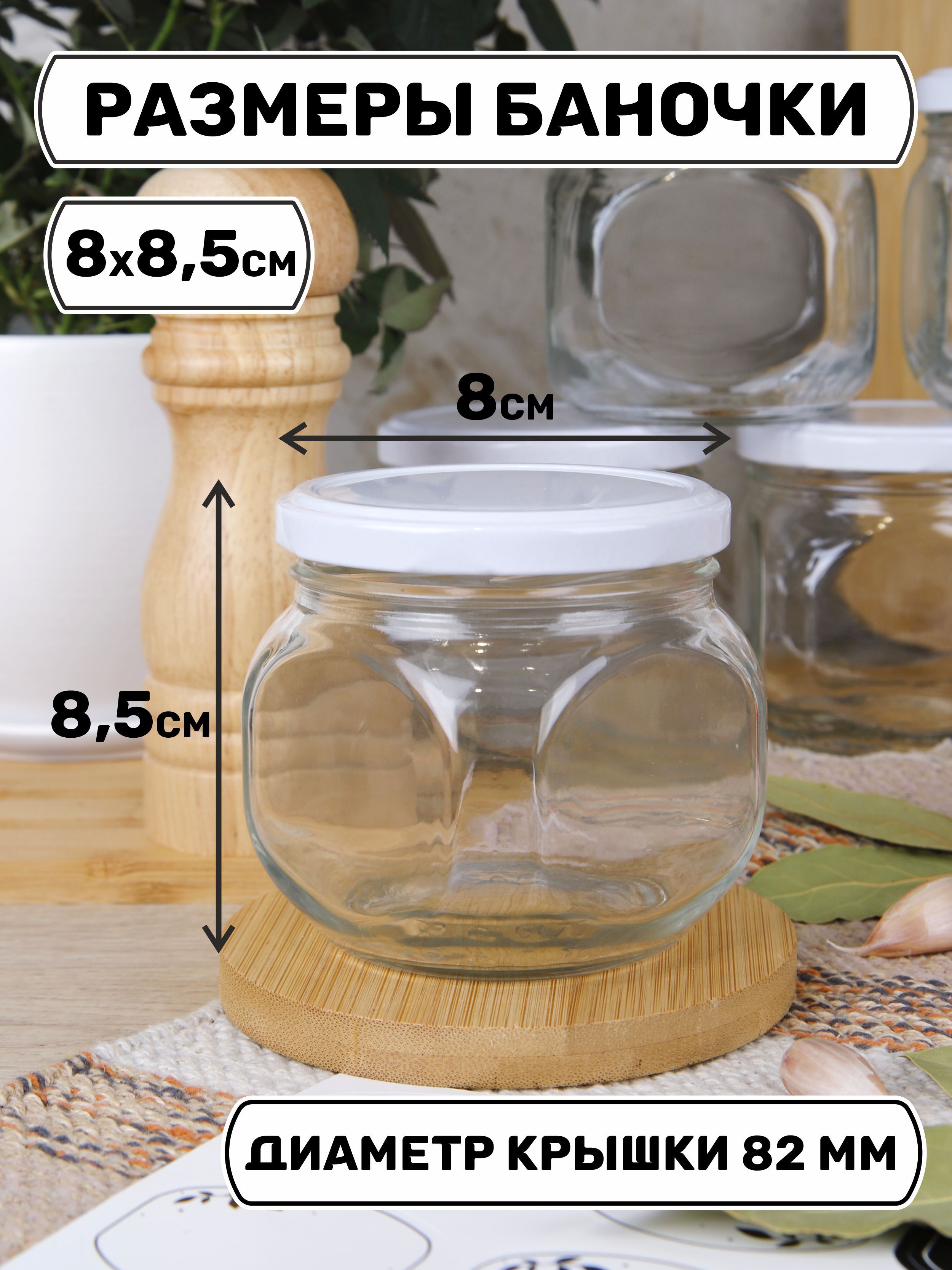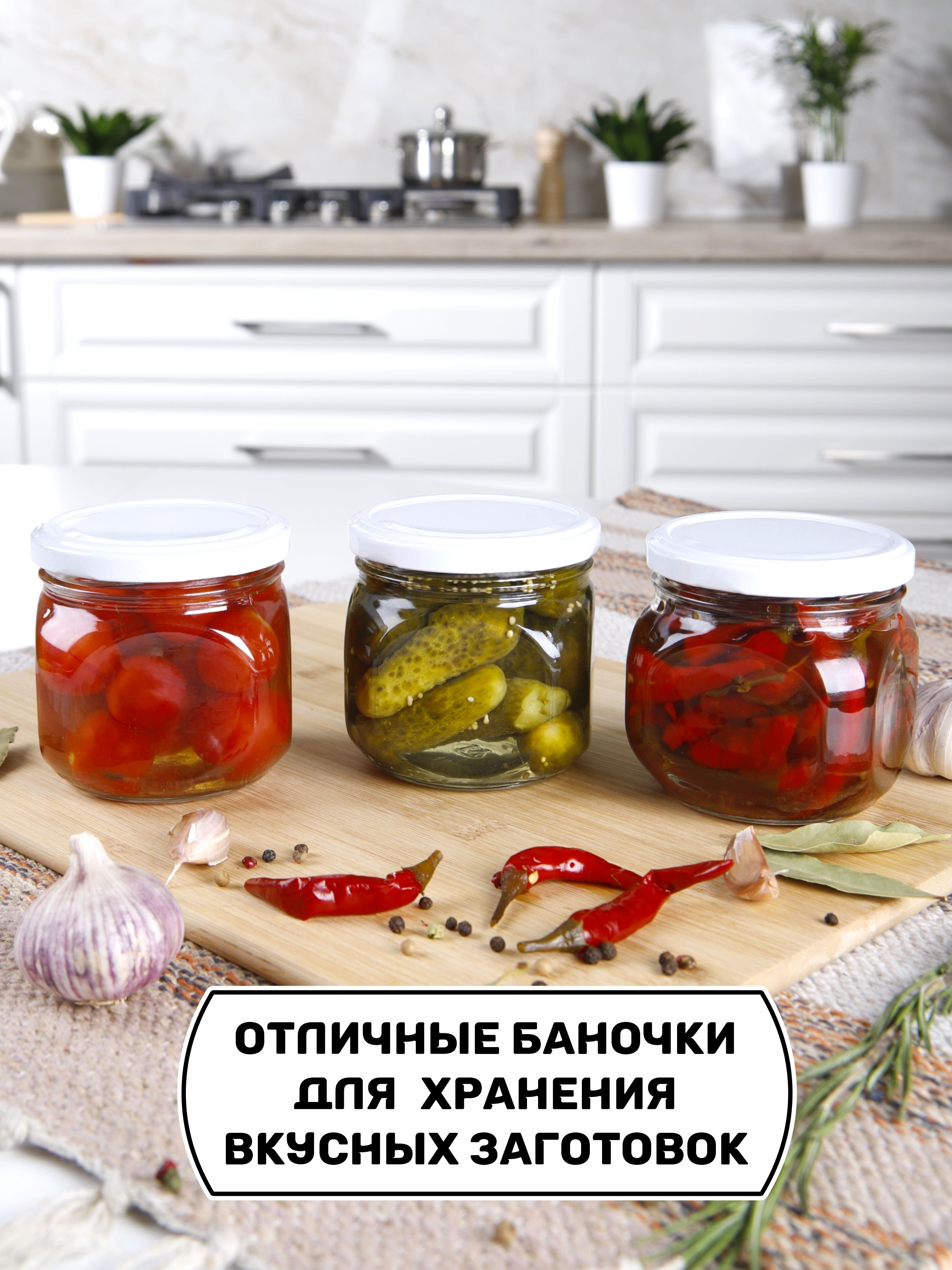 Банки для хранения 350 мл., 6 шт., белые крышечки