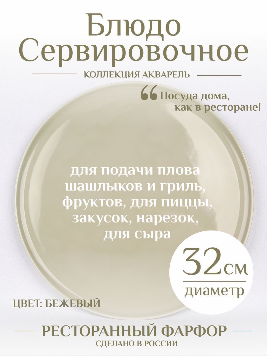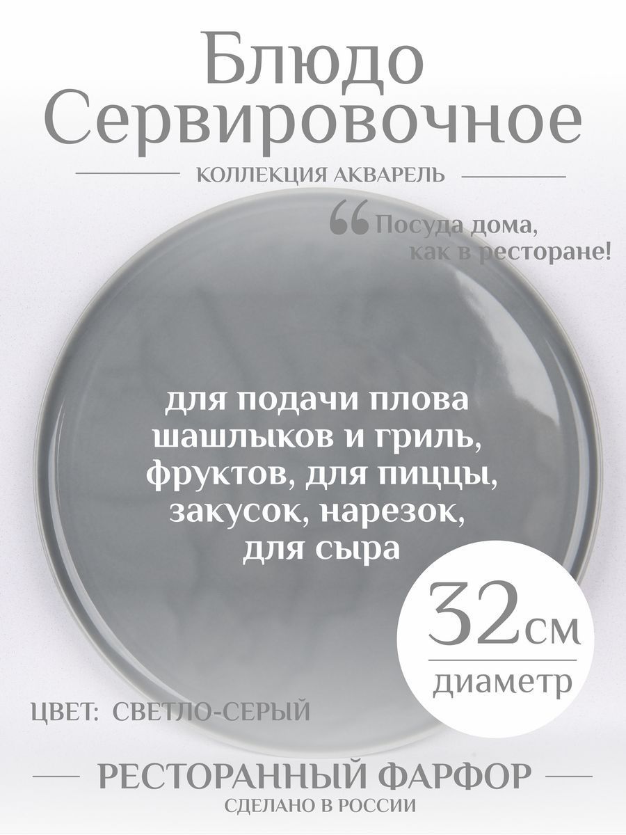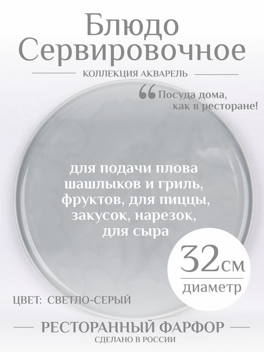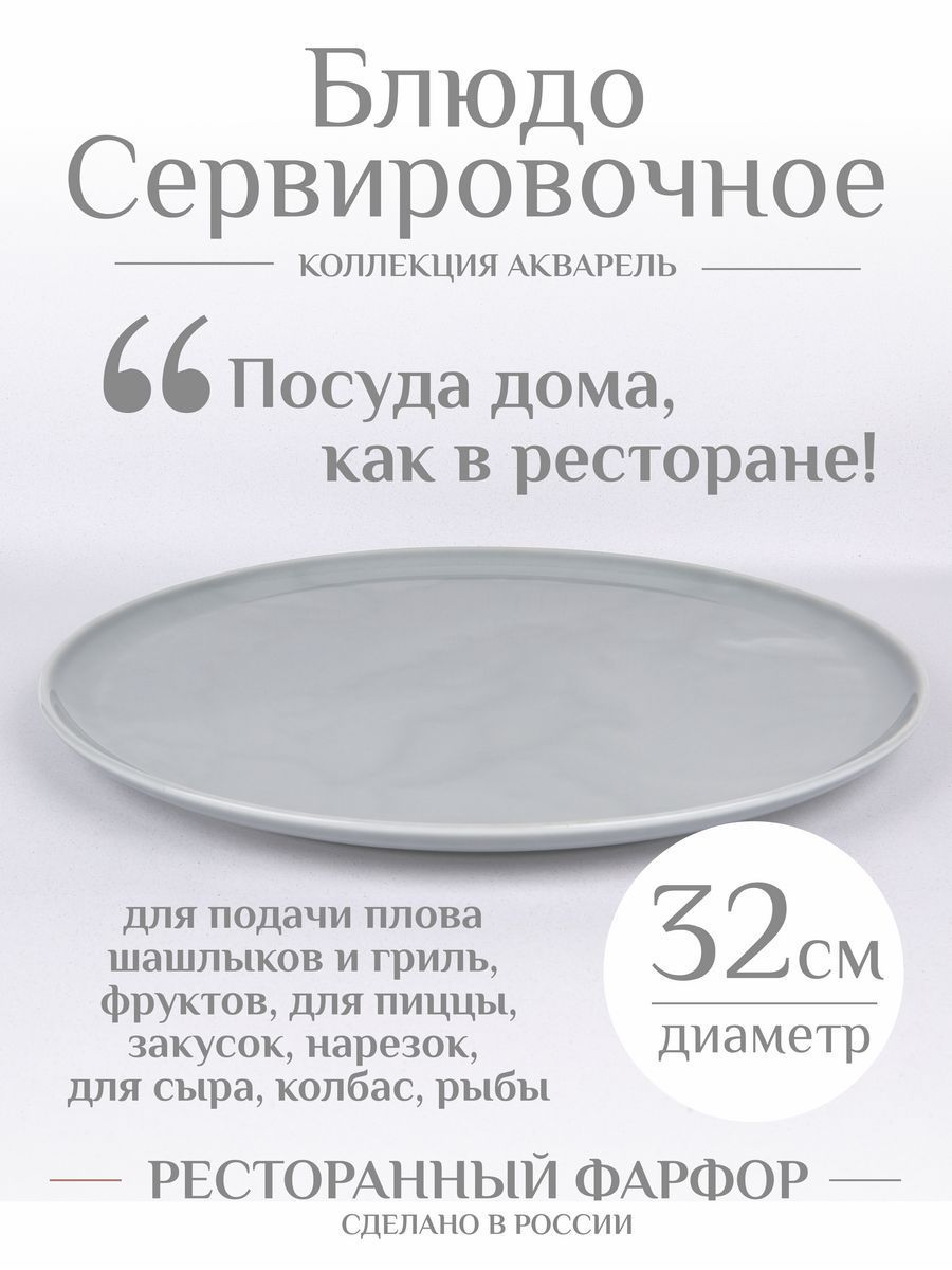 Идеальное дополнение к вашему столу - фарфоровое блюдо круглой с поверхностью из нашей серии Акварель. Размер блюда составляют 32 см, что делает его идеальным для подачи различных блюд. Это блюдо выполнено из высококачественного ресторанного фарфора, что делает его прочным и долговечным. Круглая форма придает этому блюду элегантный и изысканный вид, который идеально подходит для различных торжественных событий и обедов. Это сервировочное блюдо является отличным выбором для любителей красивой и качественной посуды. Вы можете использовать его для подачи различных блюд шашлыков овощей гриль плова для пиццы и рыбы для нарезки из сыра мяса колбасы, от различных закусок и десертов, в том числе и для торта, отлично подойдёт для канапе. Покупая это большое блюдо из фарфора, вы получаете высококачественную уникальную посуду, которая будет служить вам долгие годы. Посуда бренда Башкирский фарфор всегда уникально решение для Вашей кухни. Плюсы в том, что у нас большая палитра цветов и все они очень хорошо вписываются в любой интерьер. Вы можете спокойно подобрать что-то как для себя, так и приобрести для близкого человека в подарок, для мамы, дочери, подруге, жене, сестре, бабушке, также молодоженам и на годовщину свадьбы. Подойдет на любой праздник любому человеку, будет универсальным подарком кому угодно.