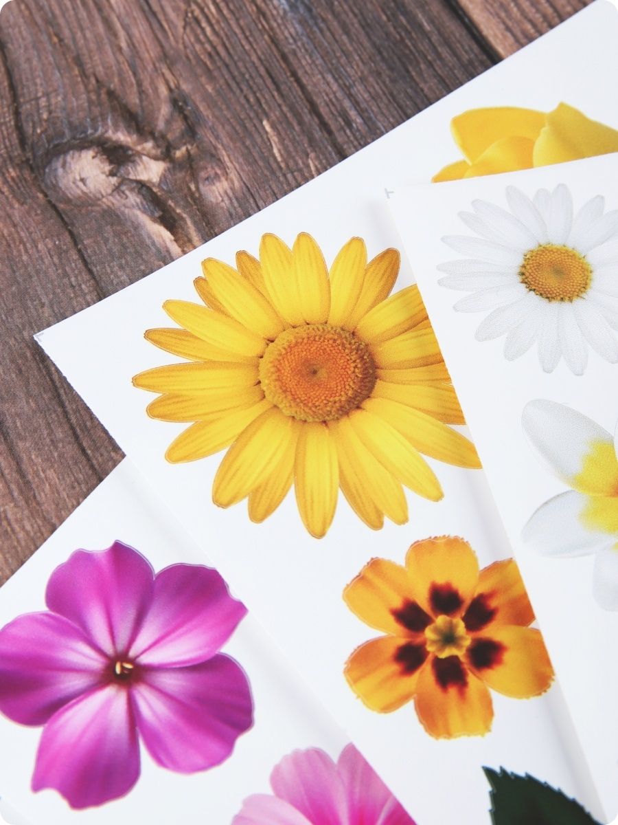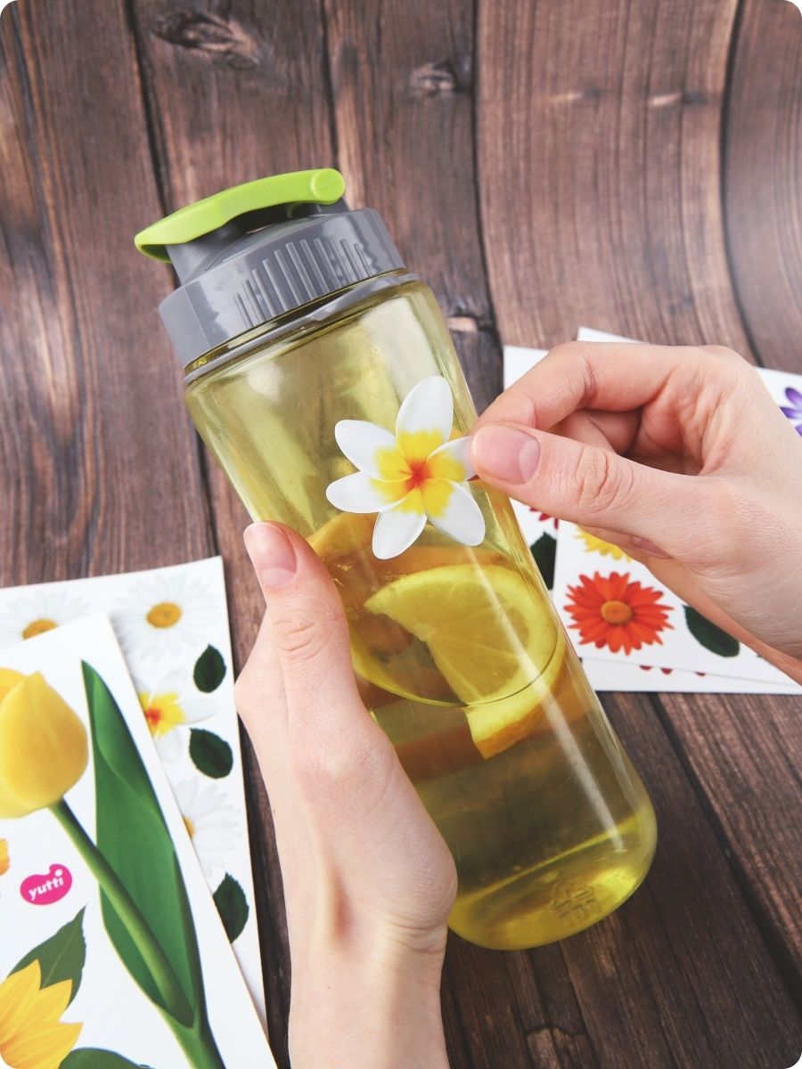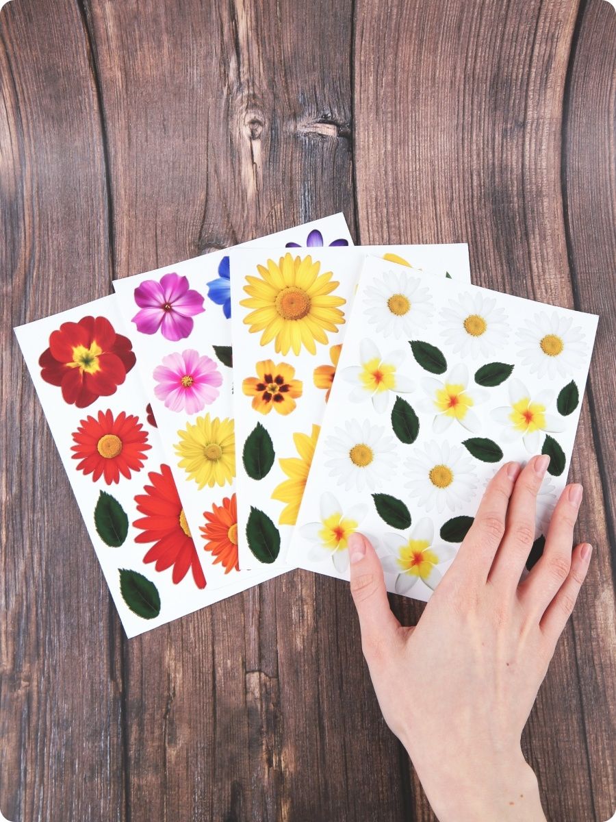 Водостойкие виниловые наклейки с цветами изготовлены на качественной пленке с экологичной печатью без запаха. В наборе яркие цветочные мотивы — ромашки, розы, пионы, герберы, подсолнухи и листья природы. Легко клеятся и снимаются без следов, подходят для кухни, ванной, детской, спальни, мебели, холодильника, ноутбука, окон, плитки и других гладких поверхностей. Универсальные стикеры добавят уюта в интерьер, украсят скетчбук, органайзер, подарки или детские вещи.