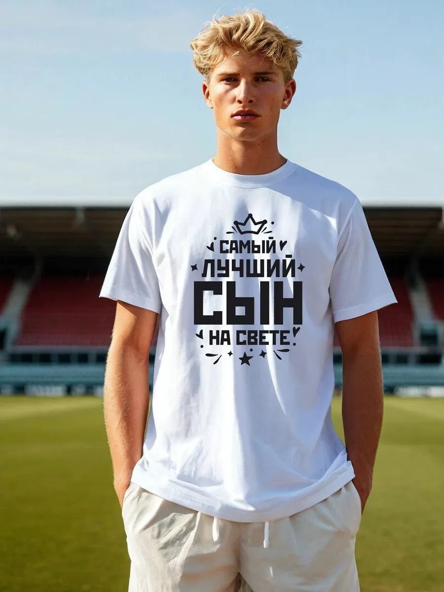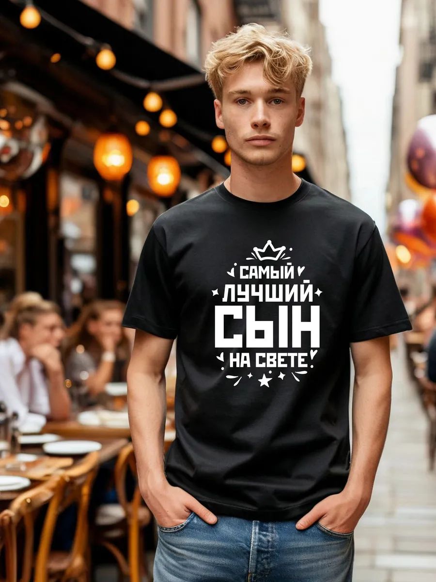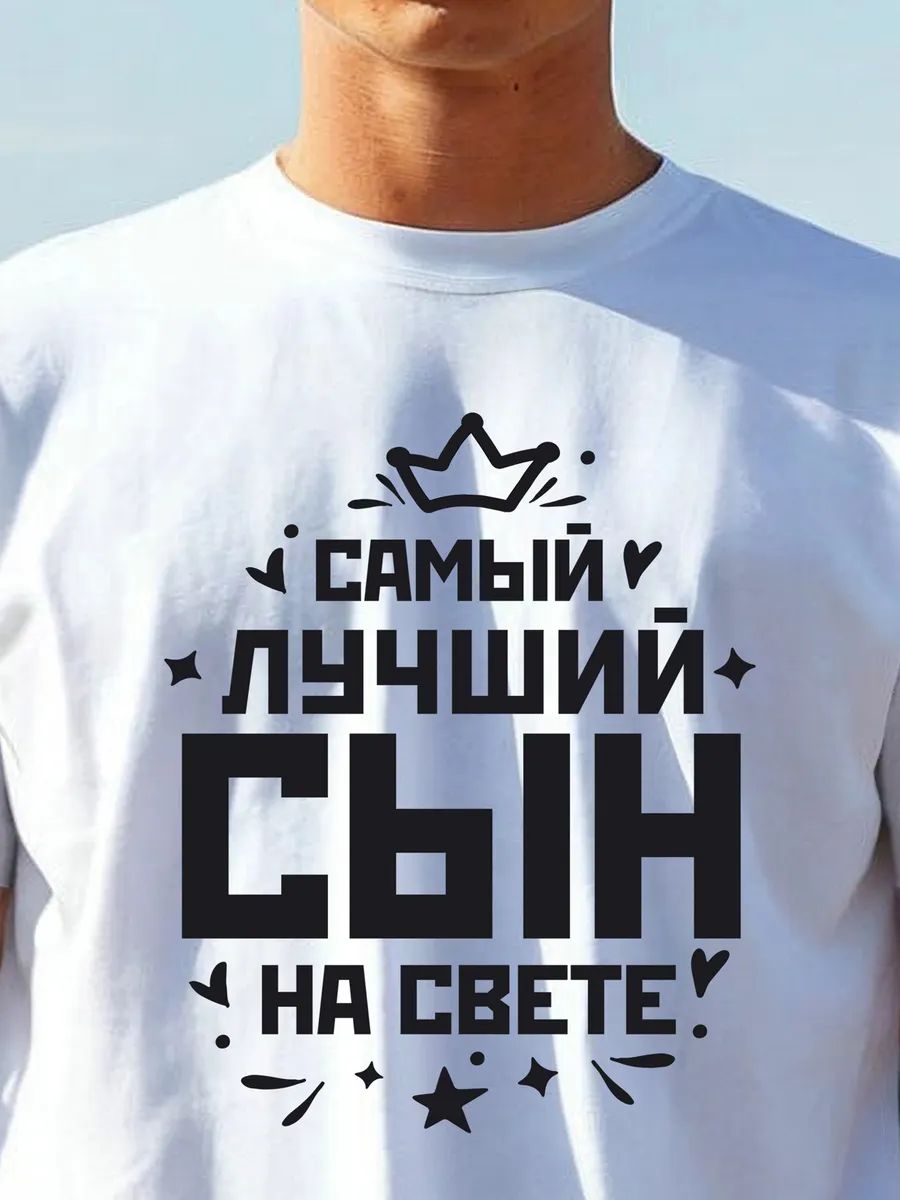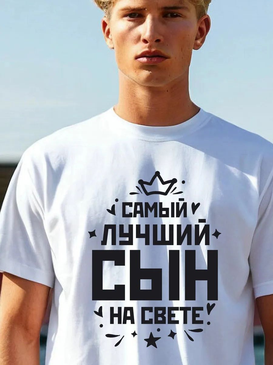 Что подарить сыну мужчине или парню? Крутой модный стильный подарок - одежда с принтом надписью Самый лучший сын на свете. Можно дарить в январе феврале марте апреле мае июне июле августе сентябре октябре ноябре декабре дополнит ваши образы. Это базавая свободная футболка с рисунком и оригинальной надписью.