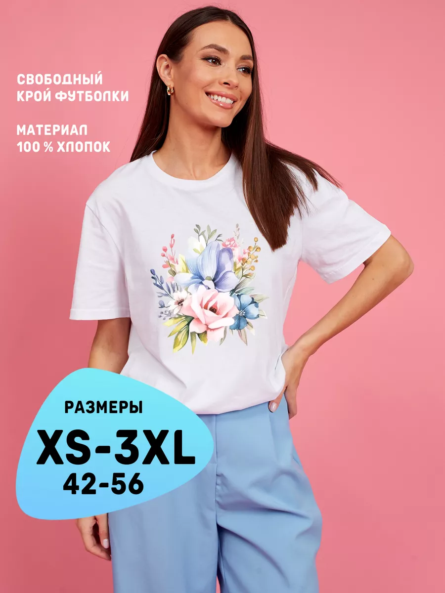 Женская футболка с цветочным принтом рисунком - тренд 2024. Идеальный выбор для модных женщин, которые ищут базовую одежду для лета. Она выполнена из плотного 100 % хлопка плотностью 160 грамм и имеет свободный крой. Это делает ее удобной для повседневной носки. Если же хотите добиться эффекта оверсайз, то нужно заказать на размер больше. Футболка с принтом букет цветов доступна в больших размерах. При выборе модной футболки для летнего гардероба, вы обязательно должны обратить внимание на белую футболку женскую оверсайз с принтом. Она не только очень комфортная, но и модная. Подойдет для создания ярких и стильных образов, как девушкам подросткам так и женщинам. Вы можете выбрать футболку с разными рисунками. Есть также вариант нарядной футболки оверсайз с принтом, что добавит больше удобства и свободы в движениях. Печать выполняется шелкографией - это самый надежный вид печати. Изделие длительное время сохраняет свой первоначальный вид. Плотный трикотажный материал держит форму, не дает усадку и не скатывается. Если вы ищете что-то нарядное для подростковых девочек, у нас есть удлиненные футболки с принтами. Летние футболки также отлично подходят для спорта и фитнеса. Они могут использоваться в качестве топов для пляжа или дома. Футболки женские с длинным рукавом и принтом прекрасно сочетаются с пиджаком и становятся прекрасным выбором для офиса. Также, наша белая длинная футболка женская с принтом доступна также в больших размерах. Эта футболка идеально подходит для тех, кто ищет комфортную и удобную одежду Не упустите возможность обновить свой летний гардероб с помощью нашей прикольной и модной белой футболки женской с принтом - она станет незаменимой вещью в вашем гардеробе на все лето!
