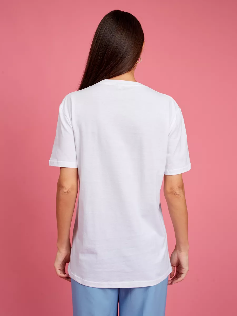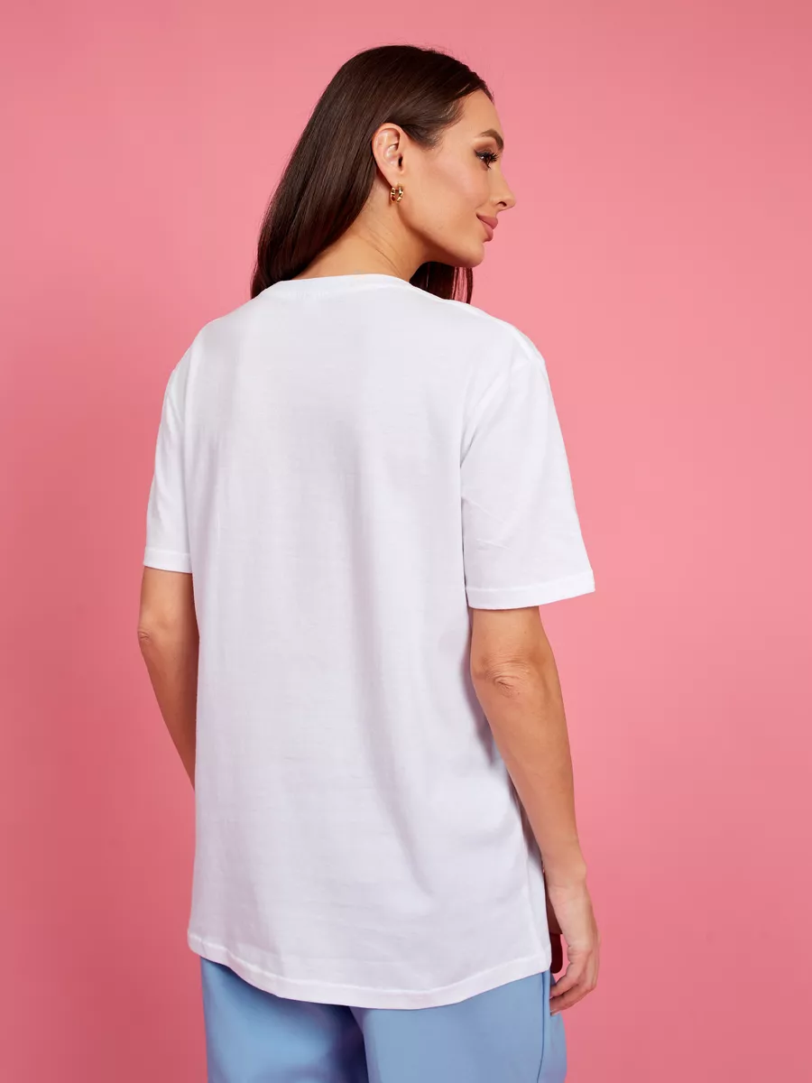 Футболка праздничная летняя белая оверсайз с цветами