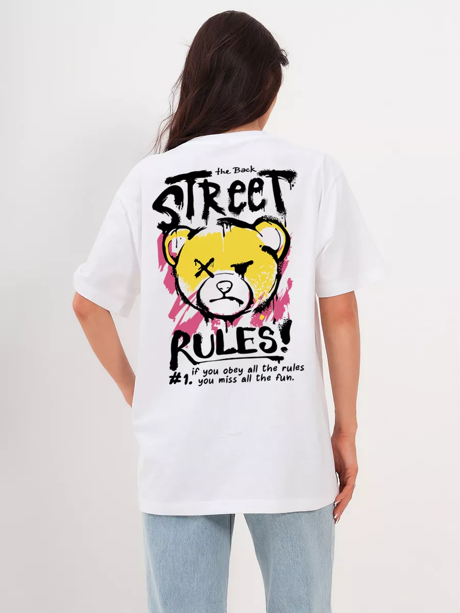 Футболка с принтом на спине белая оверсайз 100 % хлопок