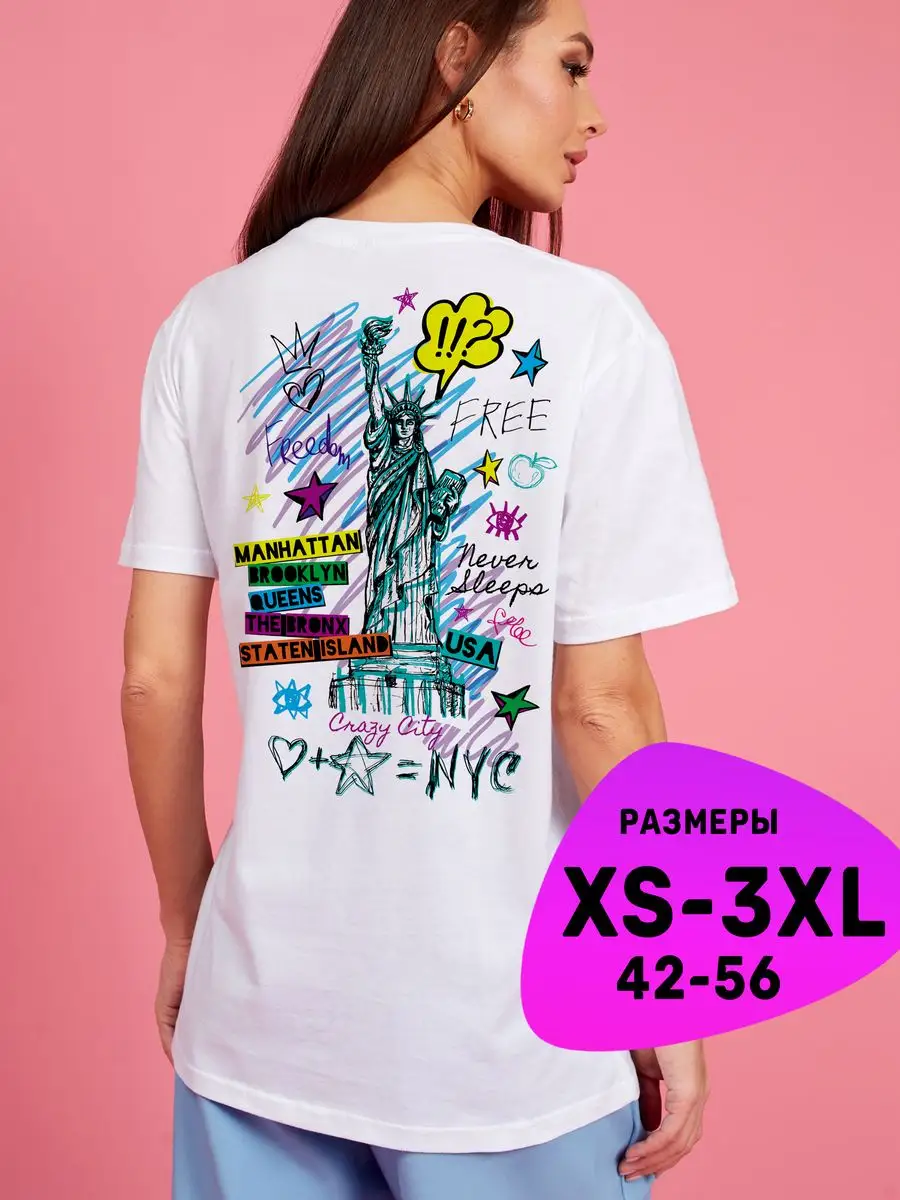 Футболка из 100 % хлопка с принтом на спине NYC Нью Йорк NEW YORK, приспущенный рукав, свободный крой для среднего и высокого роста подойдет как для женщин, девушек, так и для мужчин, подростков, молодых людей. Если же Вам нравятся более приталенные изделия, то рекомендуем выбирать на размер-два меньше. Футболка с принтом летняя выполнена из трикотажного полотна высокого качества. В состав ткани входит 100 % хлопк. Изделие свободного кроя, оверсайз. Одежда большого размера и маленького понравится женщинам любого возраста и девочкам подросткам, стильная одежда для офиса или прогулок. В нашем ассортименте Вы можете найти футболки белого и черного цвета, а так же яркие цвета. Хлопковая базовая майка выступает как спортивная. Модный апрель 2023 задал тенденции на анималистичный принт и полоску, микки маус. Однотонная тишка с надписью розового или нейтрального цвета будет Вашим фаворитом. Яркая и стильная кофта с принтом отлично сочетается с любым видом одежды. Такая футболка может быть как школьная одежда или же идеально для посадки в самолет. Наденьте под футболку женский топ фуксия и джинсы - базовый наряд для похода на работу или прогулку, который не будет стеснять Ваши телодвижения. Наденьте эту вещь с юбкой или классическими брюками - у Вас получится стильный и модный наряд на вечер. Крой блузки полуприлегающий, не оверсайз. Подойдет всем, кто хочет выделиться и быть на пике моды! Молодым девушкам, девочкам подросткам и стильным леди. Качественный, премиальный хлопок с добавлением лайкры (для эластичности и износостойкости) - идеальный состав для повседневной носки: не линяет, не вытягивается, "дышит". Наша одежда подойдет для дома, Такая модель подойдет и для беременных, а так же может заменить рубашку поло. Такая пляжная или домашняя одежда просто идеальна на каждый день. Если у Вас уже есть короткая фудболка со стразами на которой есть корона или же удлиненная, то Вам обязательно понравятся наши классические модели plus size и маленькие серые футболки.