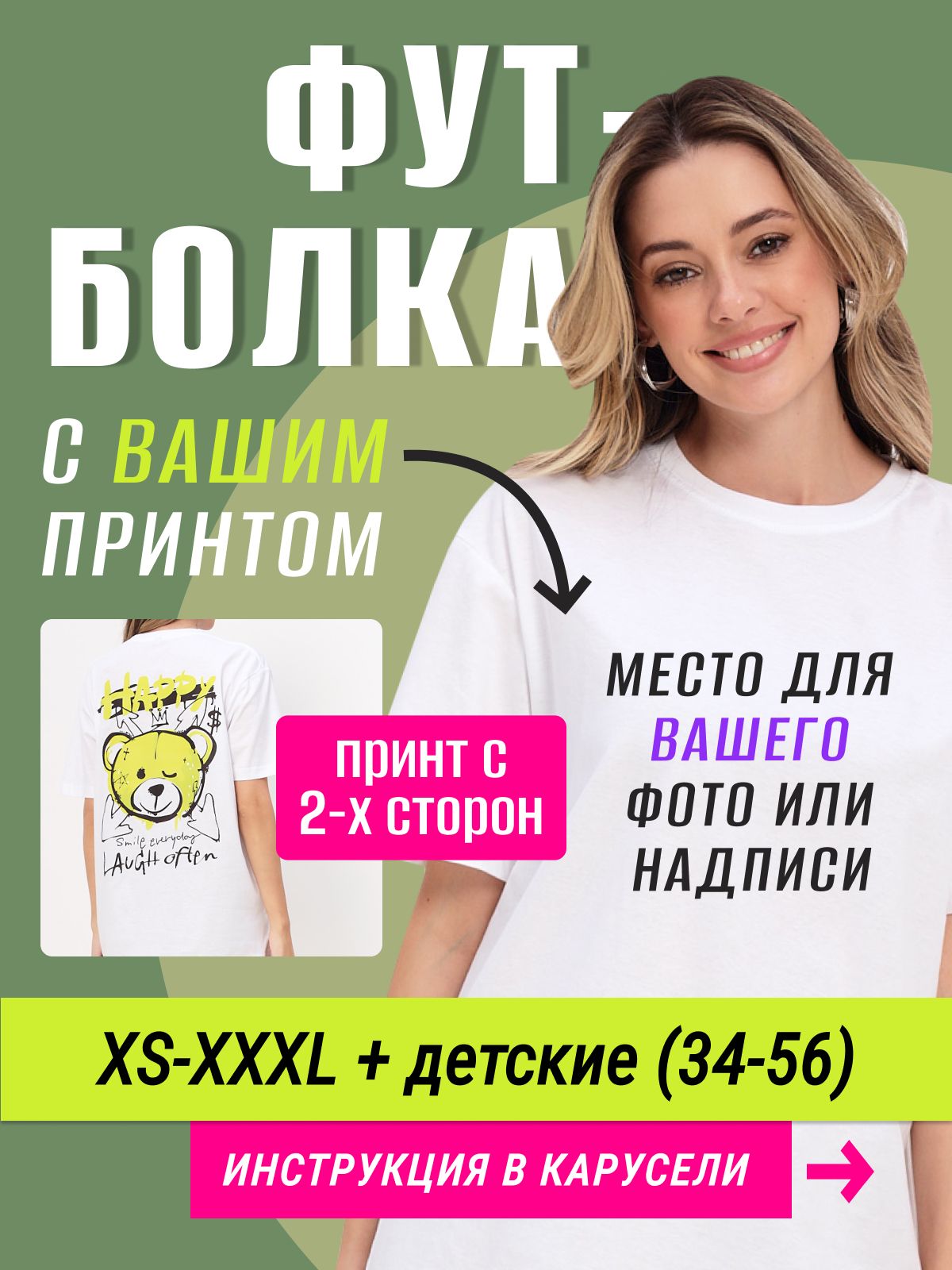 Белый двухстороняя / 58 / XXXXL / белый / 300 / Мужской / свободный / #футболка_с_фото #футболка_на_заказ #футболка_с_принтом #принт_на_заказ #своим_принтом #печать_на_заказ #индивидуальный_заказ #футболка_с_надписью #фото_принт #подарок_на_заказ #печать_фото #футболка_с_логотипом #дизайн_на_заказ #футболка_унисекс / Трикотаж / 100% хлопок / Деликатная стирка при 30 градусах, глажка изнутри