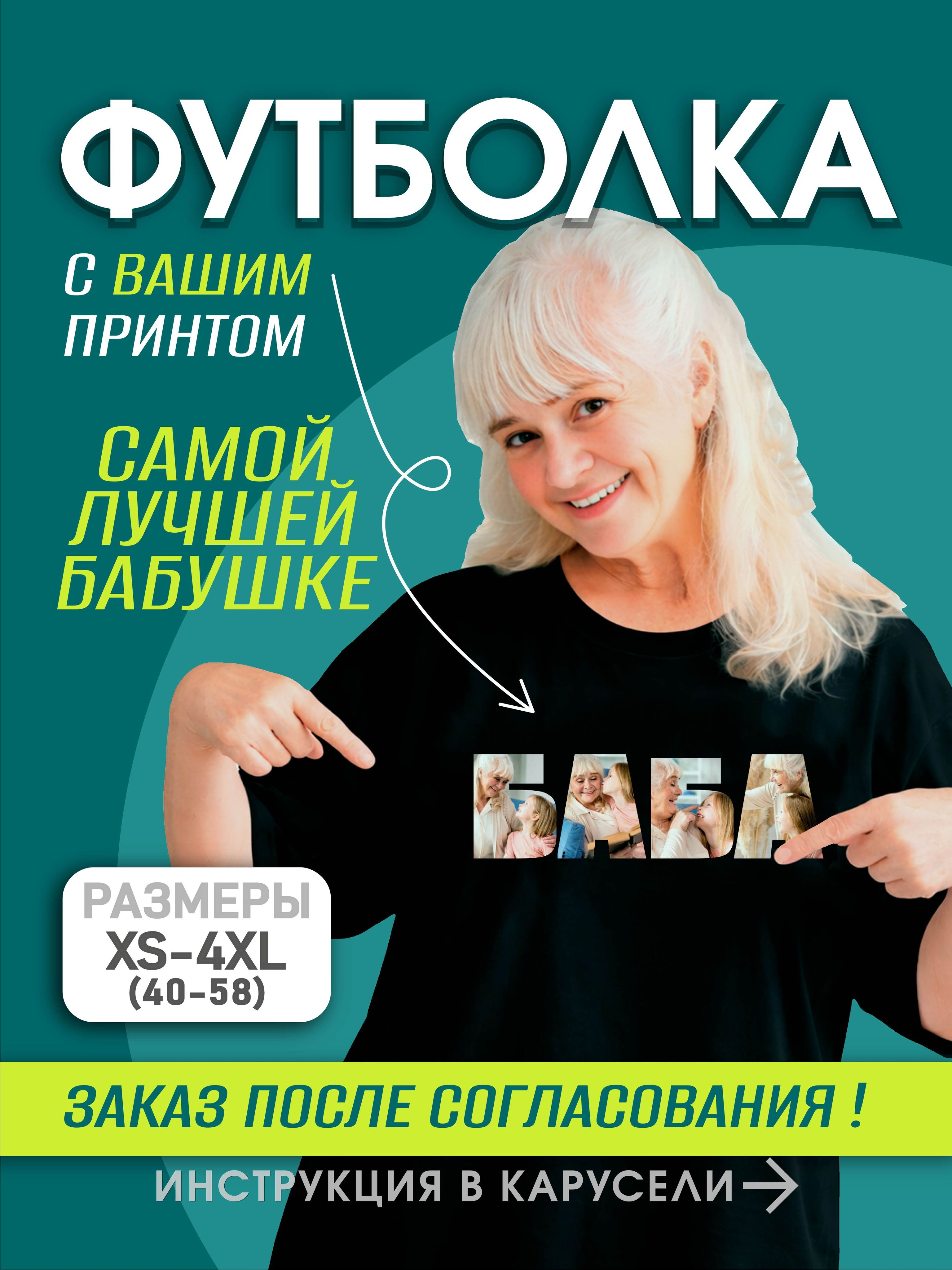 Чёрный баба / 42 / S / черный / 300 / Женский / свободный / #футболка_бабушка #футболка_бабе #лучшая_бабушка #подарок_бабушке #бабушка_с_фото #любимой_бабушке #футболка_для_бабушки #футболка_со_своим_принтом #футболка_с_фото #футболка_на_заказ #печать_на_заказ #бабушке_подарок #день_пожилого #подарок_бабушке_фото / Трикотаж / 100% хлопок / Деликатная стирка при 30 градусах, глажка с изнанки