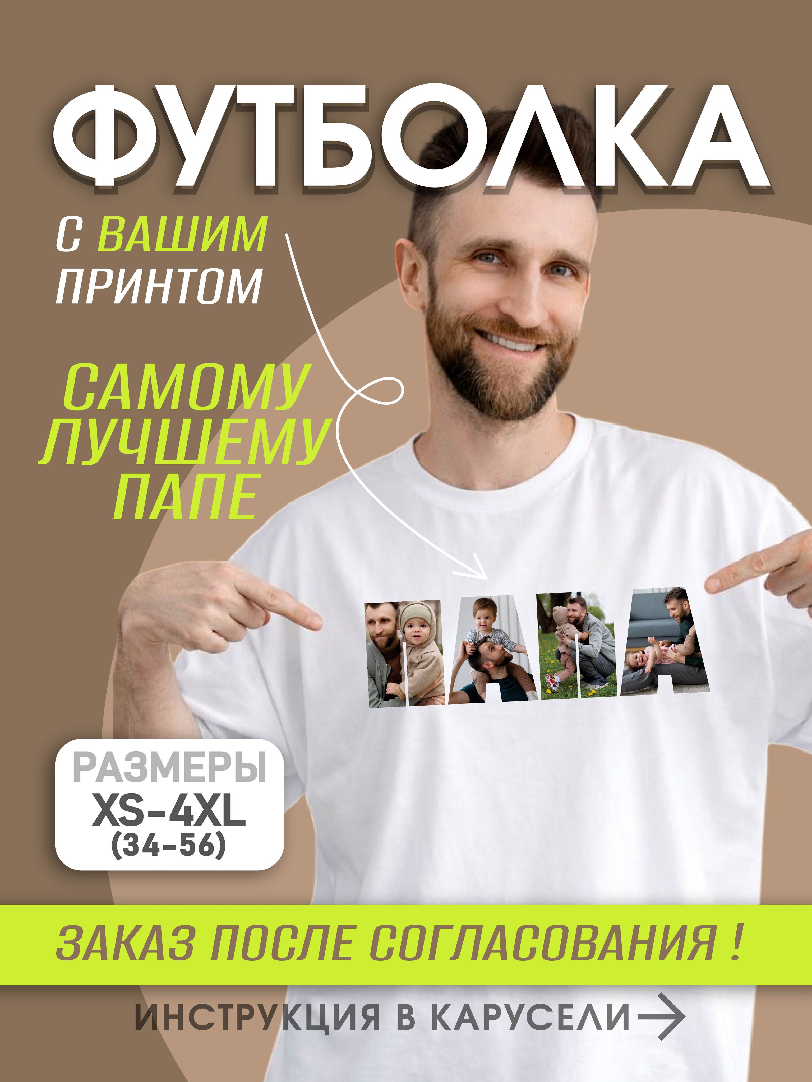 Белый папа / 40 / XS / белый / 300 / Мужской / свободный / #футболка_с_принтом_на_заказ #печать_на_футболке_на_заказ #футболка_со_своим_принтом #футболка_с_надписью_папа #футболка_с_фото_на_заказ #футболка_папа_с_фото #футболка_по_фото #папе / Трикотаж / 100% хлопок / Деликатная стирка при 30 градусах, глажка с изнанки