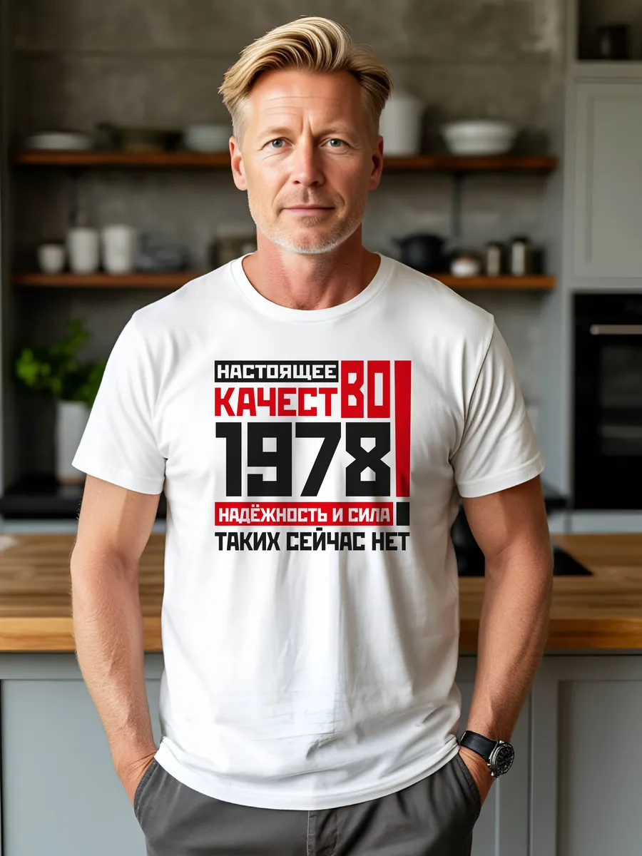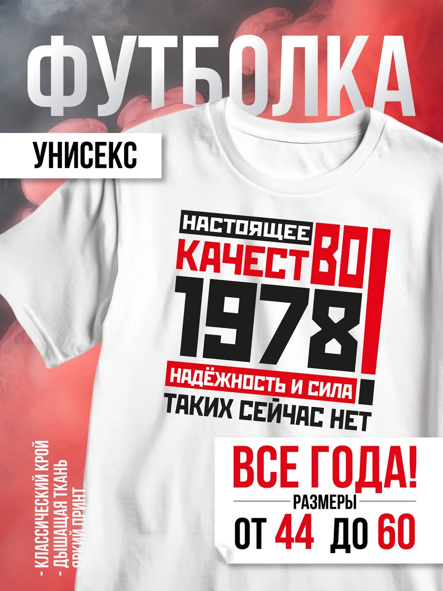 Что подарить мужчине отцу мужу дедушке папе на день рождения или новый год? Крутой модный стильный подарок - футболка со смешным принтом прикол год рождения 1978. Это базовая хлопковая свободная футболка с рисунком и оригинальной надписью.