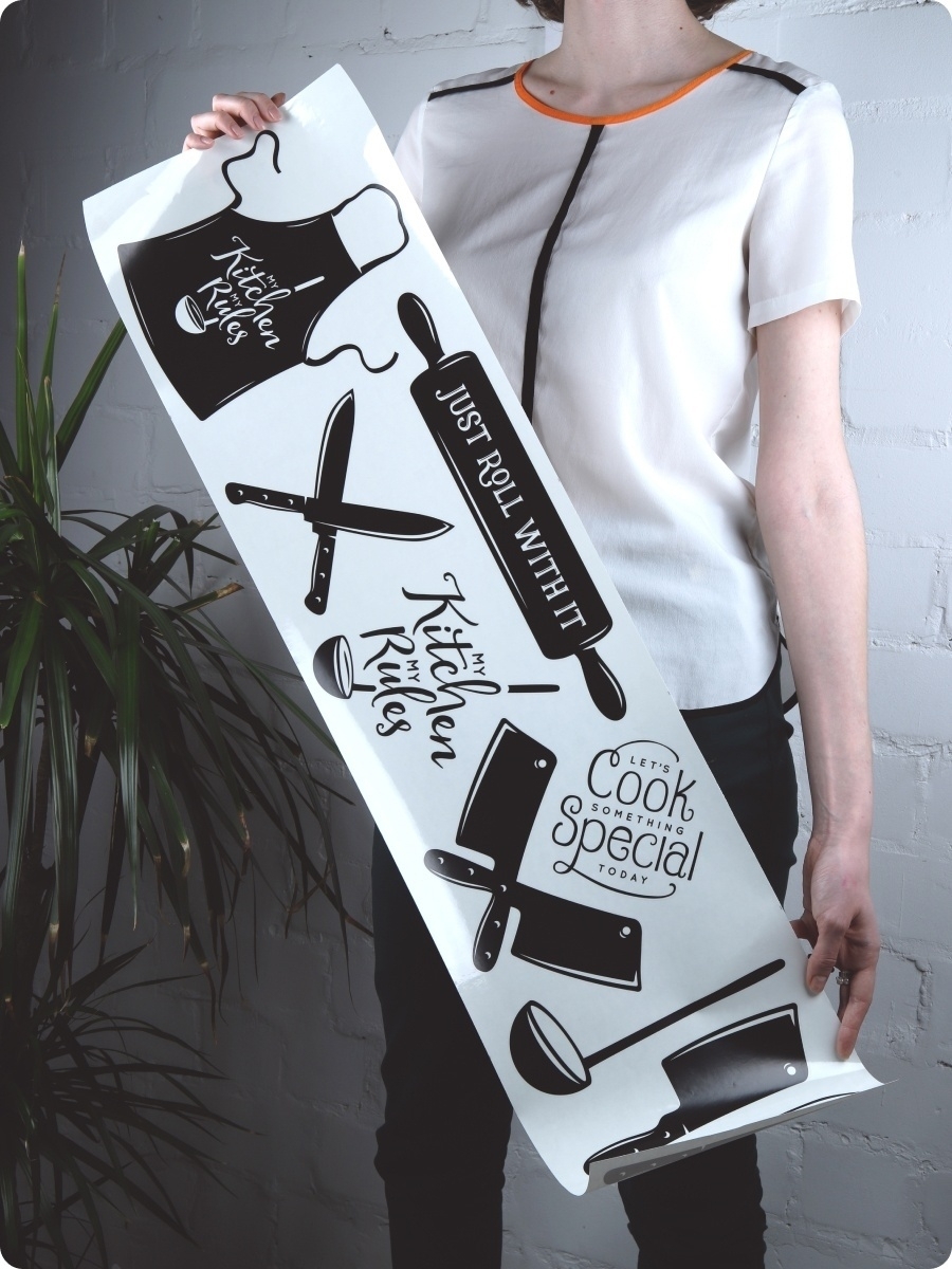 Интерьерные наклейки для кухни созданы из прозрачной виниловой плёнки и напечатаны экологичными чернилами без запаха. Благодаря точной вырезке по контуру, стикеры легко приклеиваются и снимаются без следов. Они прекрасно подойдут для украшения кухонного фартука, стен или холодильника, добавляя оригинальный акцент в интерьер и создавая атмосферу уюта.
