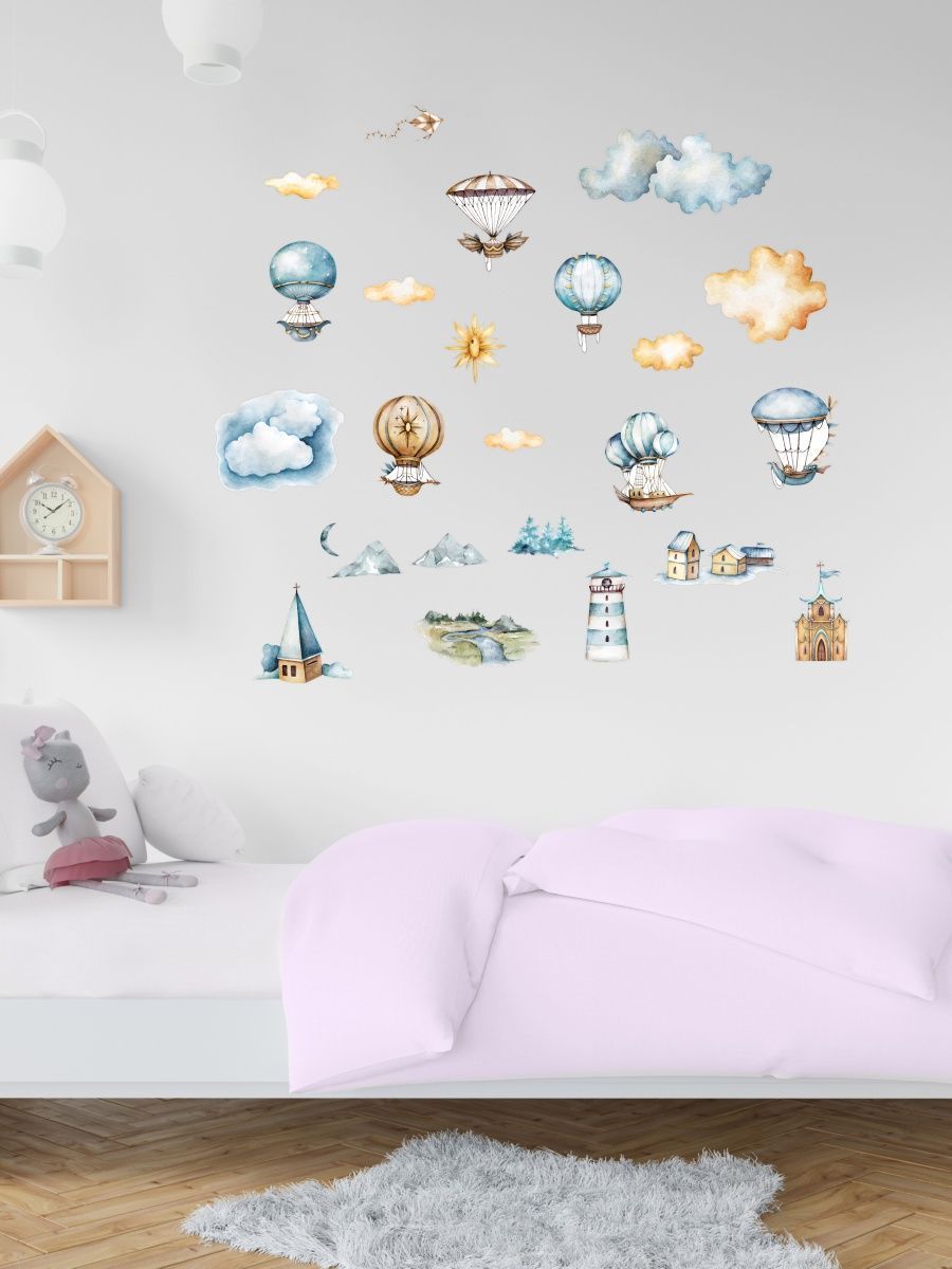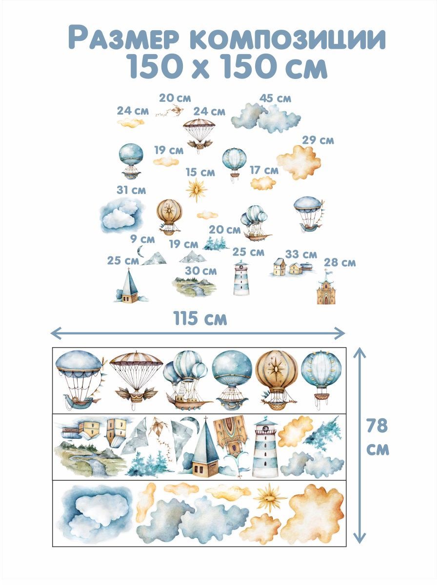Набор больших наклеек воздушные шары сделают любую детскую сказочной и незабываемой! Подходят как мальчикам, так и девочкам. Подробности про размеры элементов на фото. Виниловые наклейки на стену не только легко и быстро освежат интерьер, но и отлично замаскируют стены от повреждений. Наклейки на стену не оставляют следов клея после демонтажа. Наклейки для декора можно клеить на стену, пластик, дерево, металл, стекло, мебель. На рельефных поверхностях наклейки для интерьера на стену могут не удержаться. С бумажных обоев и окрашенных стен наклейку можно снять, но возможны повреждения! Перед тем, как клеить наклейку на окрашенную стену или на бумажные обои, рекомендуем протестировать поверхность кусочком пленки. При размещении наклеек на стекло предварительно обильно смочите поверхность водой - это облегчит нанесение наклейки (наклейку можно снимать и переносить до полного высыхания воды). Разгладьте наклейку пластиковой карточкой так, чтобы под пленкой не осталось пузырьков воздуха. После полного высыхания воды фигуры приклеятся к стеклу. Наклейки напечатаны экологичными чернилами, без запаха, безопасны для здоровья. Надежно упакованы в крепкую коробку, которая защитит ваши интерьерные наклейки при доставке.