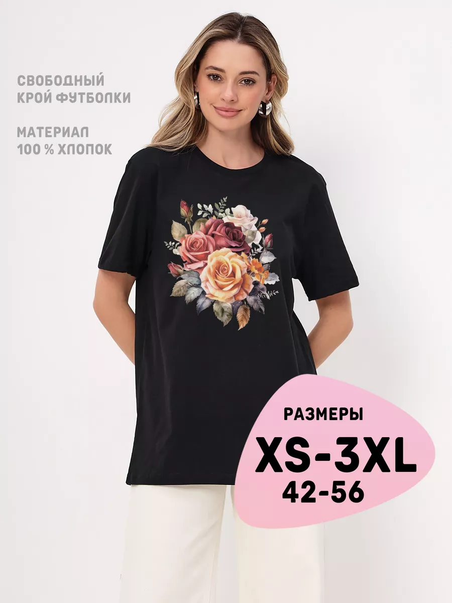 Женская футболка с цветочным принтом рисунком - тренд 2024. Идеальный выбор для модных женщин, которые ищут базовую одежду для лета. Она выполнена из плотного 100 % хлопка плотностью 160 грамм и имеет свободный крой. Это делает ее удобной для повседневной носки. Если же хотите добиться эффекта оверсайз, то нужно заказать на размер больше. Футболка с принтом букет цветов доступна в больших размерах. При выборе модной футболки для летнего гардероба, вы обязательно должны обратить внимание на черную футболку женскую оверсайз с принтом. Она не только очень комфортная, но и модная. Подойдет для создания ярких и стильных образов, как девушкам подросткам так и женщинам. Вы можете выбрать футболку с разными рисунками. Есть также вариант нарядной футболки оверсайз с принтом, что добавит больше удобства и свободы в движениях. Печать выполняется шелкографией - это самый надежный вид печати. Изделие длительное время сохраняет свой первоначальный вид. Плотный трикотажный материал держит форму, не дает усадку и не скатывается. Если вы ищете что-то нарядное для подростковых девочек, у нас есть удлиненные футболки с принтами. Летние футболки также отлично подходят для спорта и фитнеса. Они могут использоваться в качестве топов для пляжа или дома. Футболки женские с длинным рукавом и принтом прекрасно сочетаются с пиджаком и становятся прекрасным выбором для офиса. Также, наша белая длинная футболка женская с принтом доступна также в больших размерах. Эта футболка идеально подходит для тех, кто ищет комфортную и удобную одежду Не упустите возможность обновить свой летний гардероб с помощью нашей прикольной и модной белой футболки женской с принтом - она станет незаменимой вещью в вашем гардеробе на все лето!