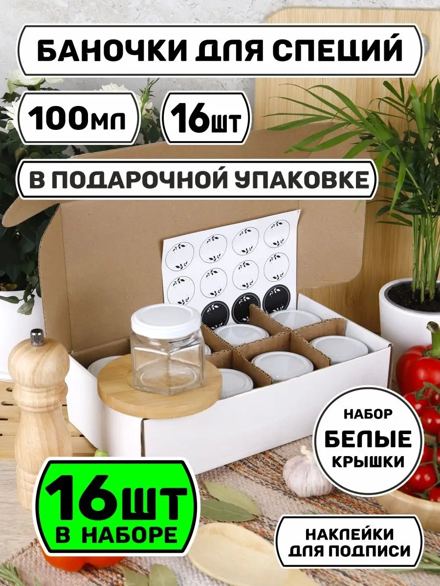 Баночки для хранения специй приправ йогурта из стекла 100 175 мл Наборы из 3 4 6 8 баночек для специй изготовлен из прочного прозрачного стекла. В комплекте белые и круглые наклейки для подписи маркером. Вы искали маленькие пустые мини баночки под косметикику крема для рукоделия бисера страз блесток круп йогуртниц кухни и сыпучих продуктов чая сахара и соли меда варенья под супучее средств стеклянные для свечей и воска декоративные для творчества закваски для йогурта сметаны кефира ряженки иван поле с металлической черной крышкой красивые наклейки на баночки баночки вакумные для приготовления йогурта соусов смеси Емкости для специй это набор баночек с чёрными винтовыми крышками. Запасные стаканы для **йогуртницы электрической с таймером galaxy kitfort** Банки из безопасного прочного стекла с герметичными металлическими крышками обеспечат сохранность специй, приправ. Благодаря прозрачным стенкам, найдете нужную специю, приправы легко дозировать и достать ложкой специи ёмкость для специй хранение на кухне набор посуды баночки под хранения набор банок для сыпучих продуктов стекло наклейки на банки посуда доя специй баночка стеклянная подарок в банке 4 6 8 10 12 16 штук 3 баночек подарок на днь рождение на кухню для жены мамы бабушке подруге сестре тёте свекрови тёще крестной повару кондитеру органайзер для продуктов прозрачные баночки для варенья чая кофе подарочный набор на новоселье юбилей хранение специй упаковка шкаф для приправ подставка для баночек баночки для приправ: корица имбирь перец кинза хмели сунели паприка для мяса чеснок горошек зира базилик смесь перцев соль сахар куркума для плова чарбец лавровый лист петрушка для шашлыка для рыбы мята тмин прованские травы кориандр тимьян панировочные сухари укроп орегано кунжут мак мускатный орех морская соль черная соль