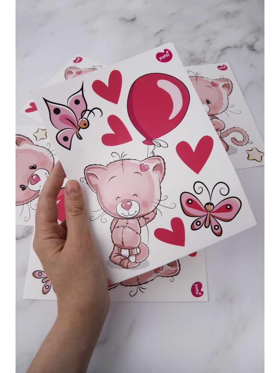 Наклейки с кошками и котенками для детей безопасны, без запахов и химии, отпечатаны и вырезаны по контору на современном новом оборудовании, легко снимаются и переклеиваются. Детские наклейки для интерьера с котиками хорошо упакованы листами А5 формата, что гарантирует сохранность при доставке, комплект наклеек для малышей не сомнется. Наклейки можно клеить на столик для кормления, мебель, кровать, на пеленальный комод, шкаф, на стеклянные дверцы стенки, на холодильник, на детскую кроватку, стены, на обои, на кафельную плитку, на окно и оконные откосы, на входную дверь, на канцелярские товары, на телефон, на ноутбук, детские ящики в саду. Набор многоразовых стикеров (наклеек) с котами и кошками. Оригинальные виниловые наклейки также подходят для улицы, можно клеить на самокат, скутер, машинки, велосипеды, легко отклеиваются и наклеиваются, не оставляют следов.