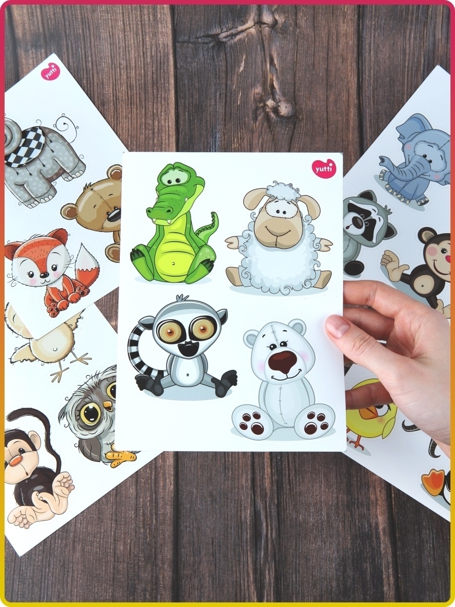 Красивые наклейки для детей безопасны, без запахов и химии, отпечатаны и вырезаны по контору на современном новом оборудовании, легко снимаются и переклеиваются. Детские наклейки для интерьера хорошо упакованы листами А5 формата, что гарантирует сохранность при доставке, комплект наклеек для малышей не сомнется. Наклейки можно клеить на столик для кормления, мебель, кровать, на пеленальный комод, шкаф, на стеклянные дверцы стенки, на холодильник, на детскую кроватку, стены, на обои, на кафельную плитку, на окно и оконные откосы, на входную дверь, на канцелярские товары, на телефон, на ноутбук, детские ящики в саду. Набор многоразовых стикеров (наклеек) для творчества с кошками, динозаврами, лягушками, хаски и другими животными. Оригинальные виниловые наклейки также подходят для улицы, можно клеить на самокат, скутер, машинки, велосипеды, легко отклеиваются и наклеиваются, не оставляют следов.