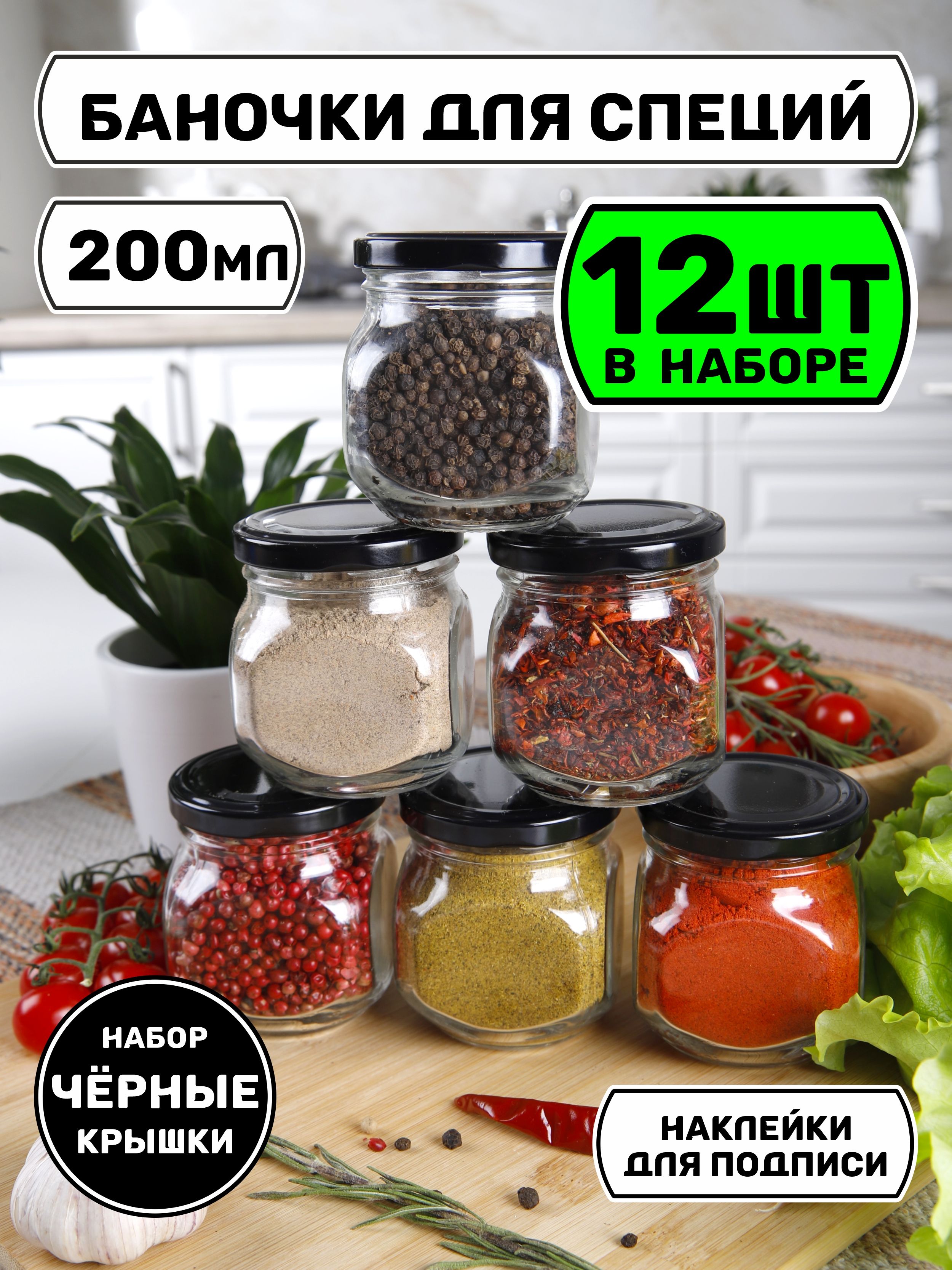 Баночки для хранения специй приправ йогурта из стекла 200 мл. Набор из 12 банок для специй изготовлен из прочного прозрачного стекла. В комплекте белые и круглые наклейки для подписи маркером. Вы искали маленькие пустые мини баночки под косметику крема для рукоделия бисера страз блесток круп йогуртниц кухни и сыпучих продуктов чая сахара и соли меда варенья под сыпучее средств стеклянные для свечей и воска декоративные для творчества закваски для йогурта сметаны кефира ряженки поле с металлической черной крышкой красивые наклейки на баночки баночки вакуумные для приготовления йогурта соусов смеси Емкости для специй это набор баночек с чёрными винтовыми крышками. Запасные стаканы для йогуртницы электрической с таймером galaxy kitfort Банки из безопасного прочного стекла с герметичными металлическими крышками обеспечат сохранность специй, приправ. Благодаря прозрачным стенкам, найдете нужную специю, приправы легко дозировать и достать ложкой специи ёмкость для специй хранение на кухне набор посуды баночки под хранения набор банок для сыпучих продуктов стекло наклейки на банки посуда доя специй баночка стеклянная подарок в банке 4 6 8 10 12 16 штук 3 баночек подарок на день рождение на кухню для жены мамы бабушке подруге сестре тёте свекрови тёще крестной повару кондитеру органайзер для продуктов прозрачные баночки для варенья чая кофе подарочный набор на новоселье юбилей хранение специй упаковка шкаф для приправ подставка для баночек баночки для приправ: корица имбирь перец кинза хмели-сунели паприка для мяса чеснок горошек зира базилик смесь перцев соль сахар куркума для плова чабрец лавровый лист петрушка для шашлыка для рыбы мята тмин прованские травы кориандр тимьян панировочные сухари укроп орегано кунжут мак мускатный орех морская соль черная соль