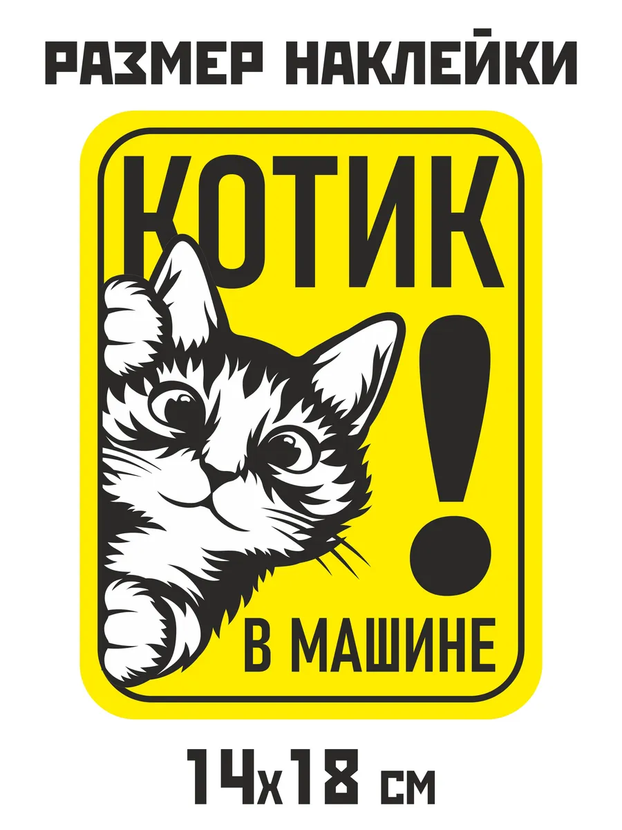 Наклейка знак на авто дети в машине с котиком