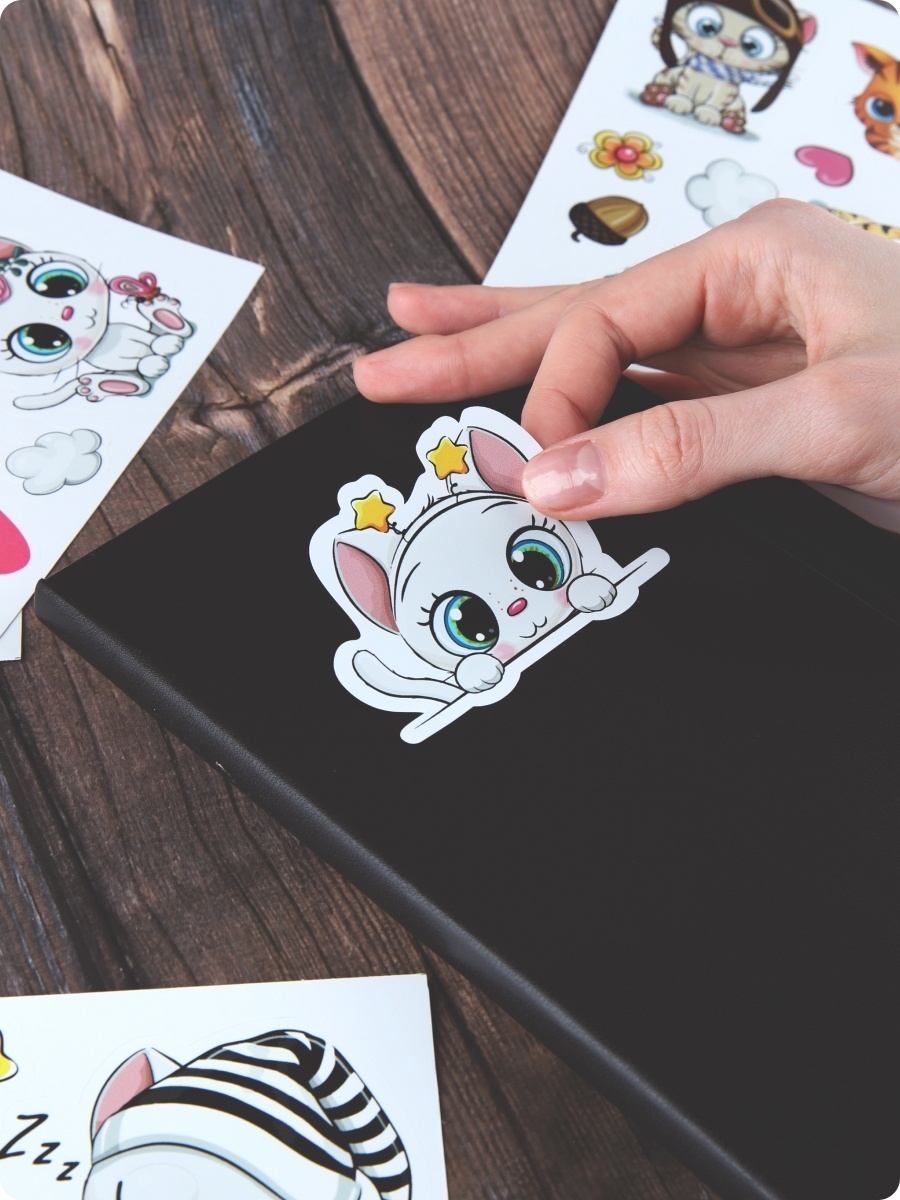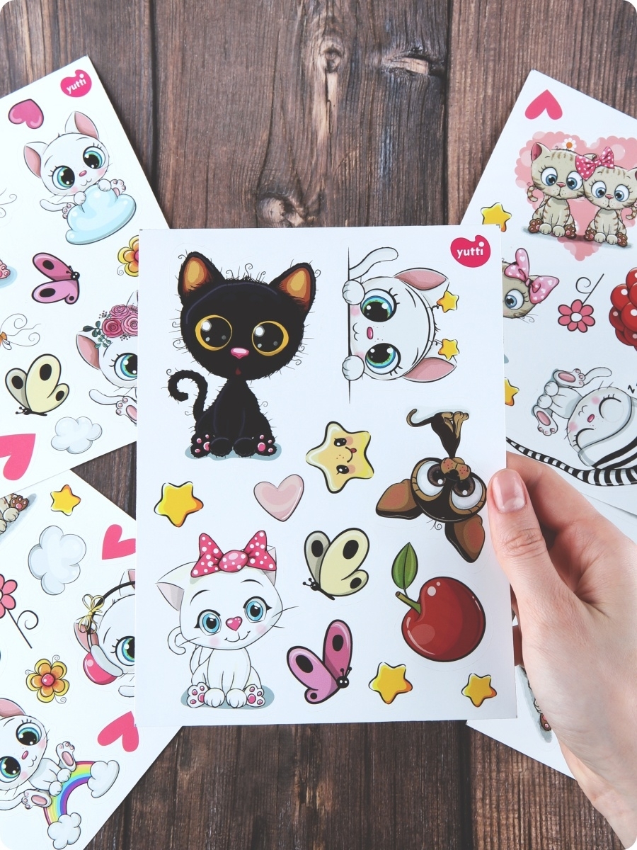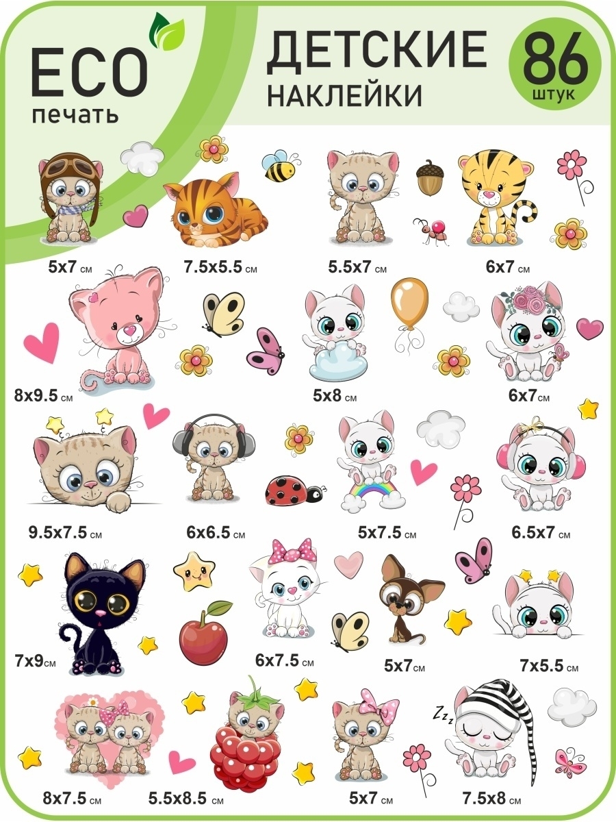 Красивые наклейки для детей безопасны, без запахов и химии, отпечатаны и вырезаны по контору на современном новом оборудовании, легко снимаются и переклеиваются. Детские наклейки для интерьера хорошо упакованы листами А5 формата, что гарантирует сохранность при доставке, комплект наклеек для малышей не сомнется. Наклейки можно клеить на столик для кормления, мебель, кровать, на пеленальный комод, шкаф, на стеклянные дверцы стенки, на холодильник, на детскую кроватку, стены, на обои, на кафельную плитку, на окно и оконные откосы, на входную дверь, на канцелярские товары, на телефон, на ноутбук, детские ящики в саду. Набор многоразовых стикеров (наклеек) для творчества с кошками, динозаврами, лягушками, хаски и другими животными. Оригинальные виниловые наклейки также подходят для улицы, можно клеить на самокат, скутер, машинки, велосипеды, легко отклеиваются и наклеиваются, не оставляют следов.