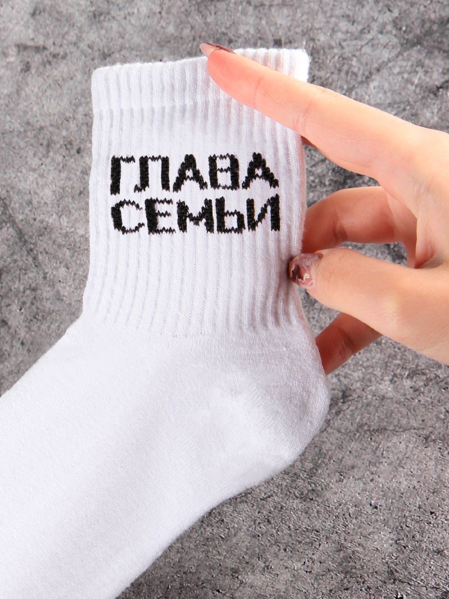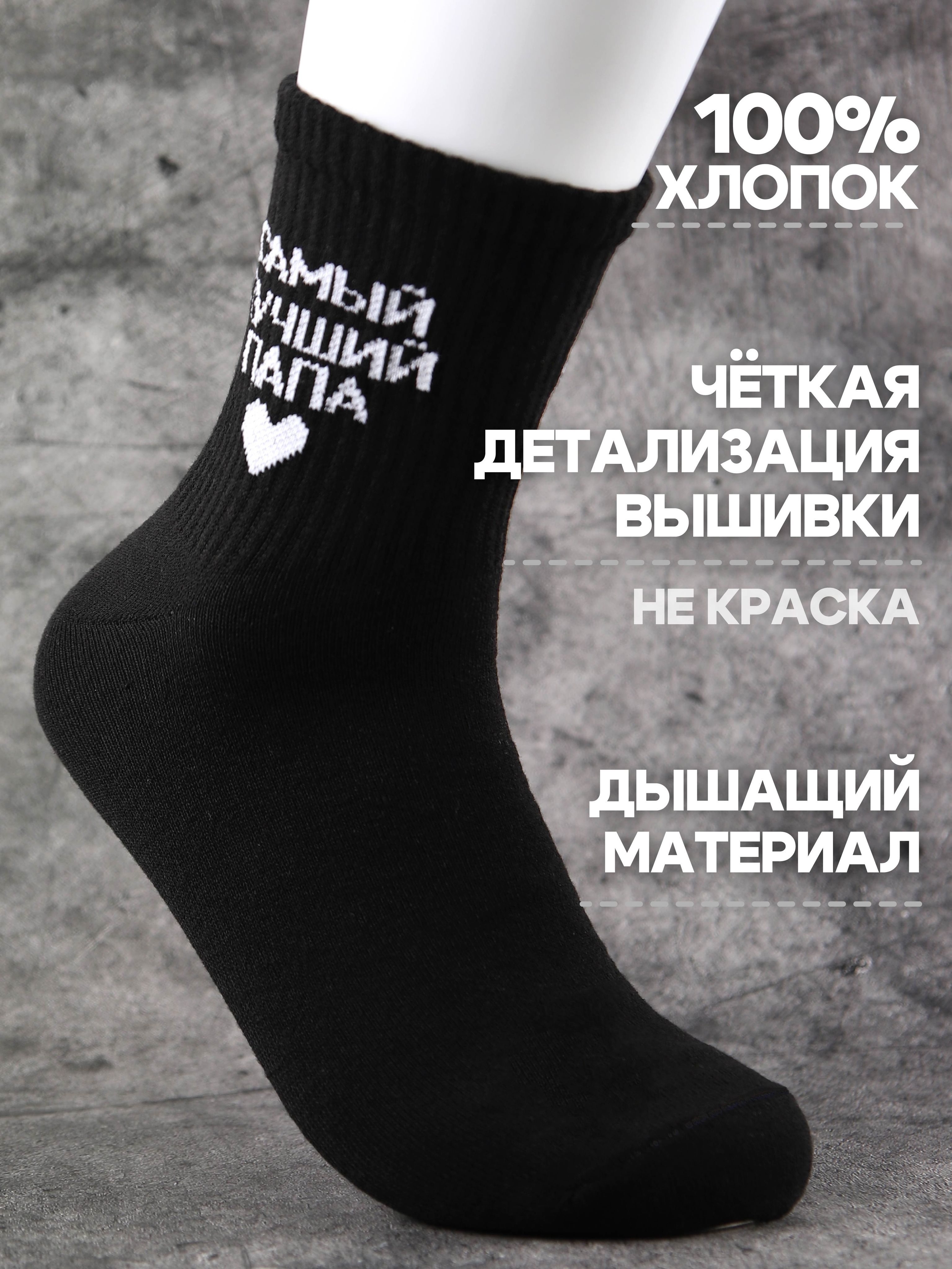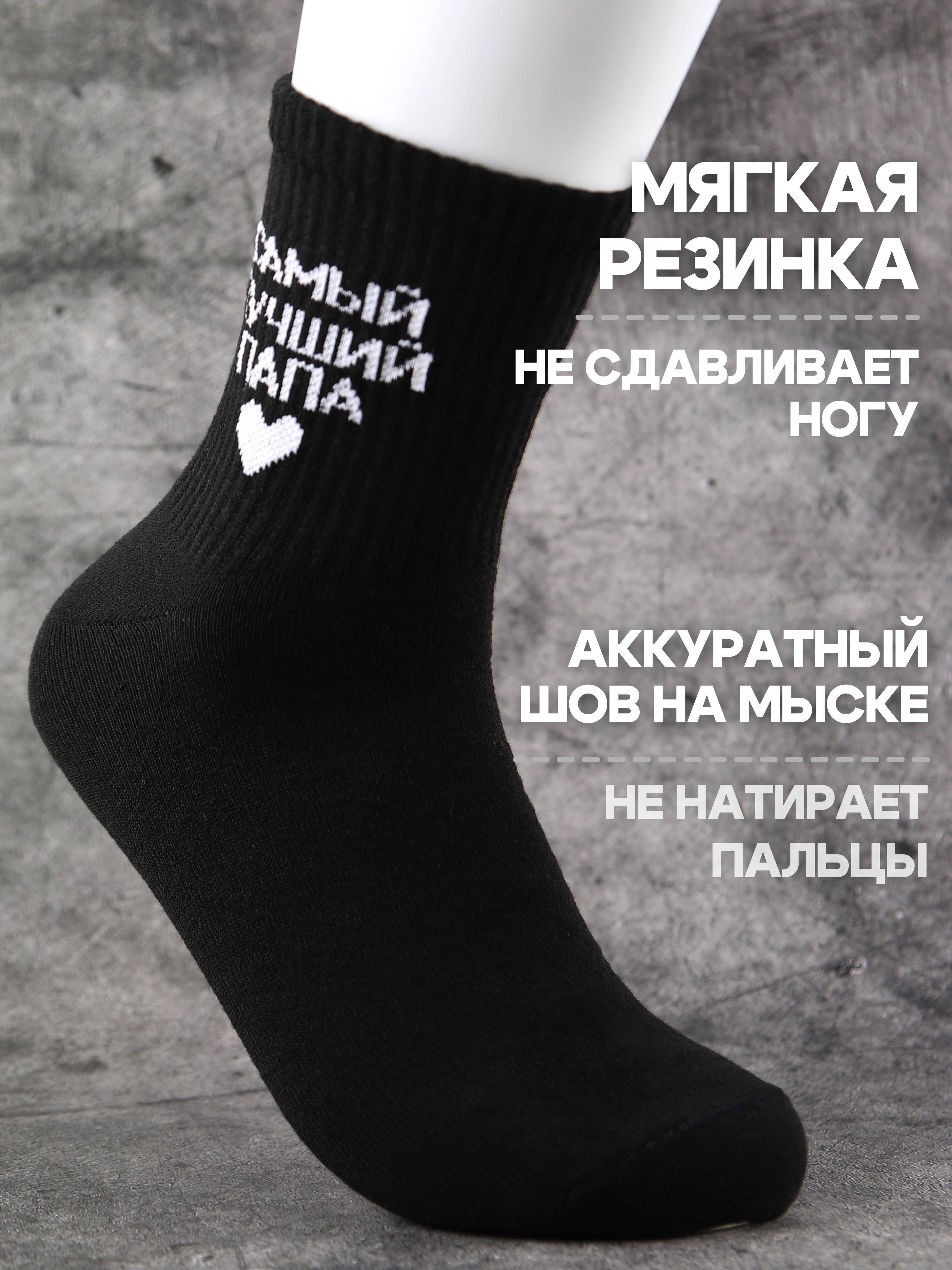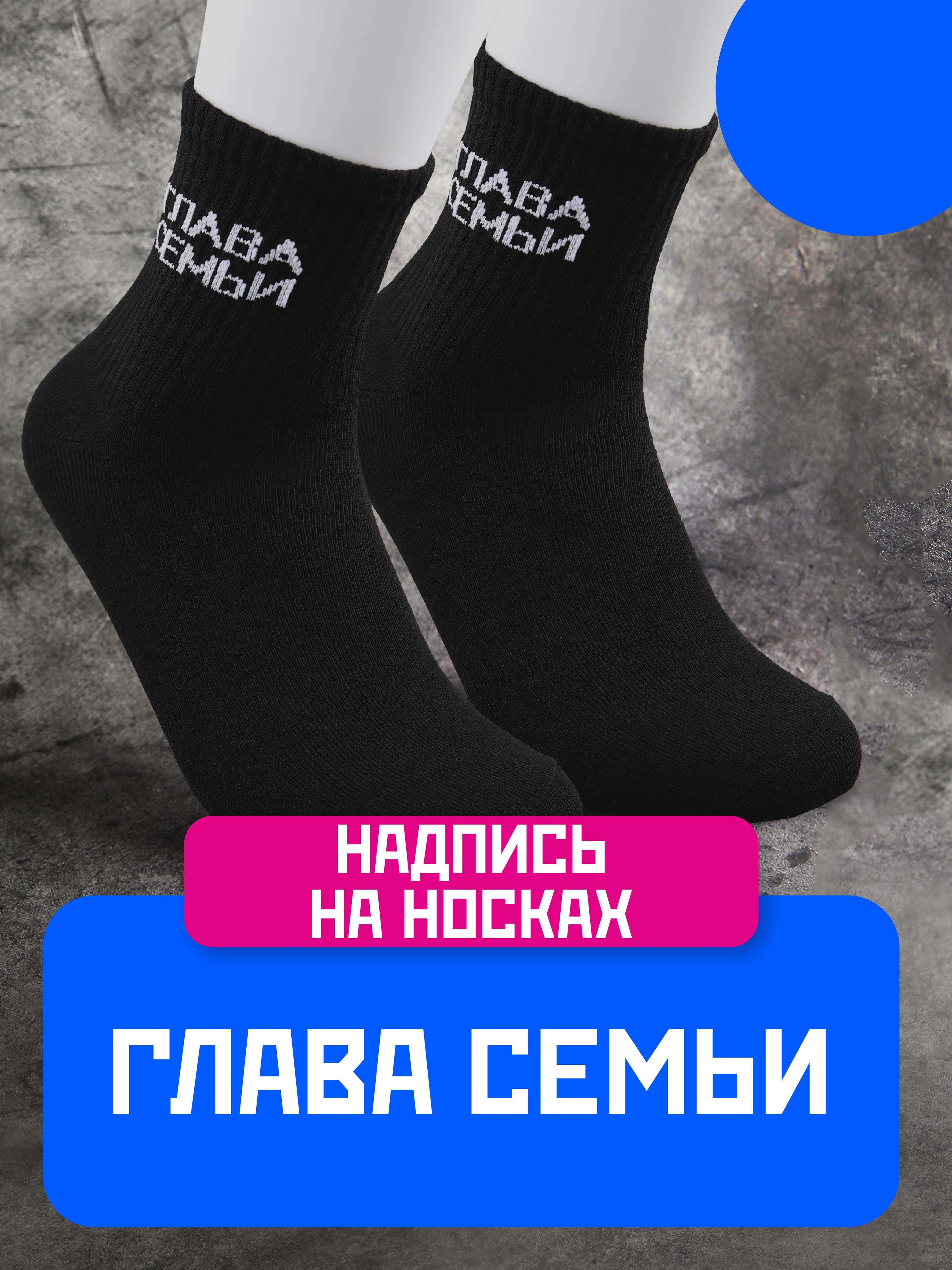 Чёрные носки с надписью «Глава семьи» в размере 29 — для мужчин с нестандартным размером ноги. Статус подтверждён, юмор присутствует.
