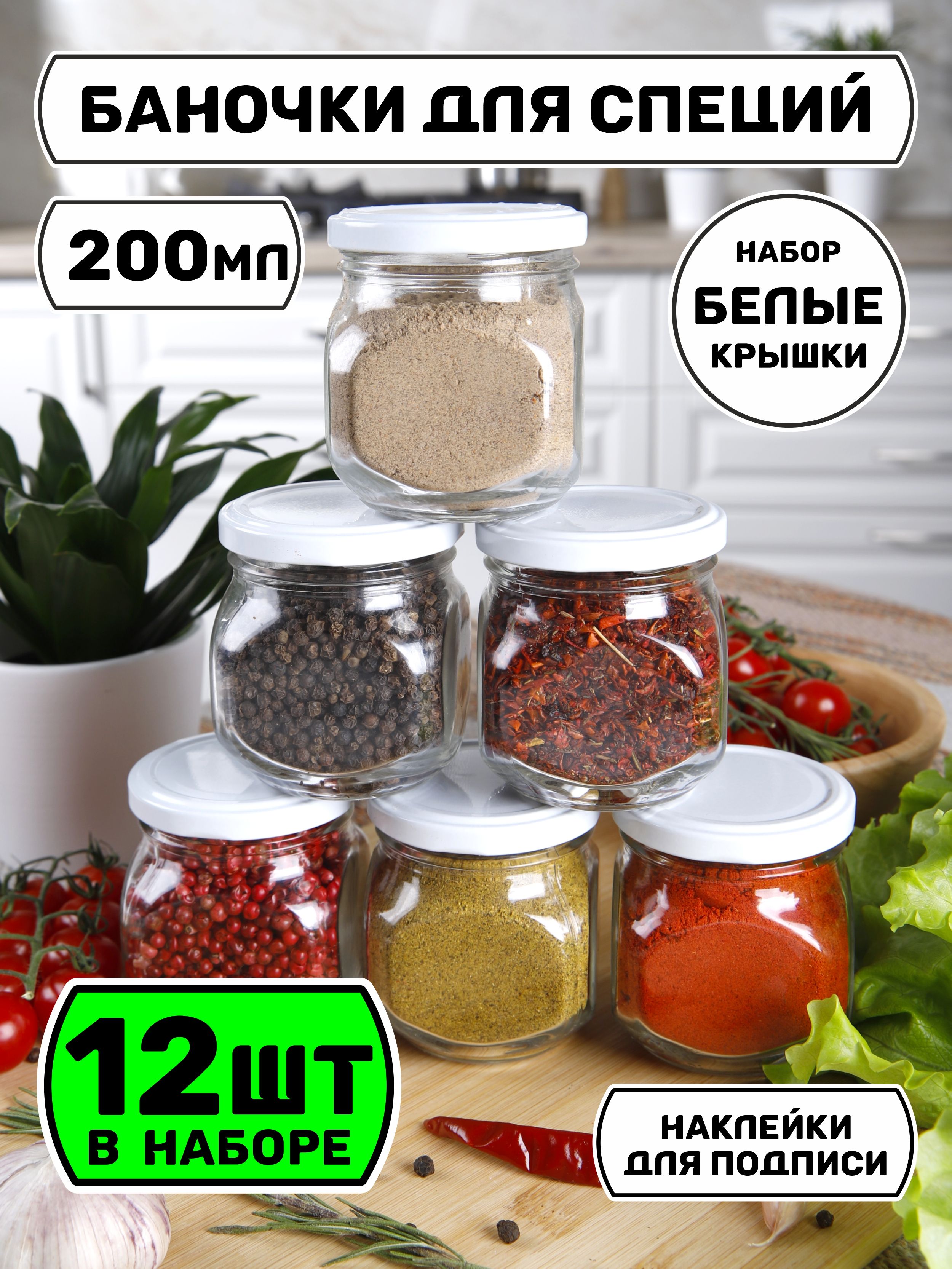 Баночки для хранения специй приправ йогурта из стекла 200 мл. Набор из 6 банок для специй изготовлен из прочного прозрачного стекла. В комплекте белые и круглые наклейки для подписи маркером. Вы искали маленькие пустые мини баночки под косметику крема для рукоделия бисера страз блесток круп йогуртниц кухни и сыпучих продуктов чая сахара и соли меда варенья под сыпучее средств стеклянные для свечей и воска декоративные для творчества закваски для йогурта сметаны кефира ряженки поле с металлической черной крышкой красивые наклейки на баночки баночки вакуумные для приготовления йогурта соусов смеси Емкости для специй это набор баночек с чёрными винтовыми крышками. Запасные стаканы для йогуртницы электрической с таймером galaxy kitfort Банки из безопасного прочного стекла с герметичными металлическими крышками обеспечат сохранность специй, приправ. Благодаря прозрачным стенкам, найдете нужную специю, приправы легко дозировать и достать ложкой специи ёмкость для специй хранение на кухне набор посуды баночки под хранения набор банок для сыпучих продуктов стекло наклейки на банки посуда доя специй баночка стеклянная подарок в банке 4 6 8 10 12 16 штук 3 баночек подарок на день рождение на кухню для жены мамы бабушке подруге сестре тёте свекрови тёще крестной повару кондитеру органайзер для продуктов прозрачные баночки для варенья чая кофе подарочный набор на новоселье юбилей хранение специй упаковка шкаф для приправ подставка для баночек баночки для приправ: корица имбирь перец кинза хмели-сунели паприка для мяса чеснок горошек зира базилик смесь перцев соль сахар куркума для плова чабрец лавровый лист петрушка для шашлыка для рыбы мята тмин прованские травы кориандр тимьян панировочные сухари укроп орегано кунжут мак мускатный орех морская соль черная соль