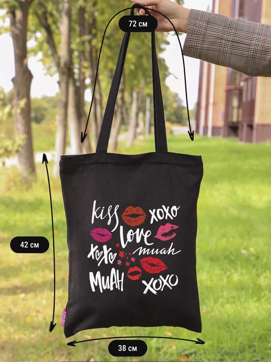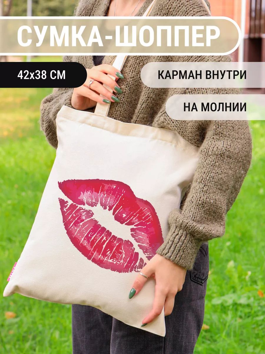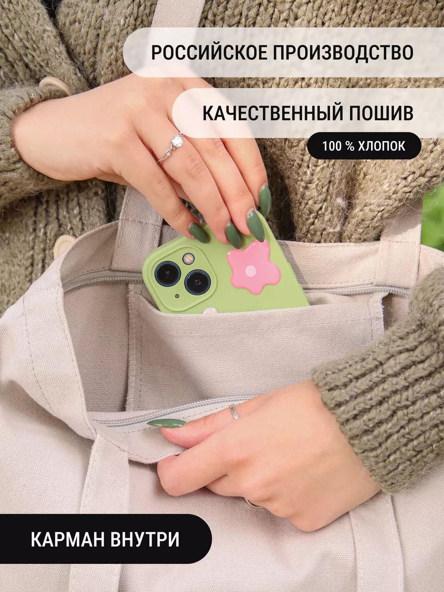 Прочная сумка-шоппер женская через плечо из 100% органического хлопка (плотность 230-240 гр/м²). Размер: 35×39 см, длина ремня 35 см. Универсальный аксессуар для повседневных дел и стильных образов.