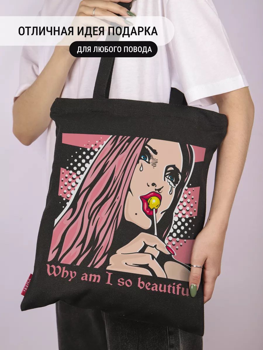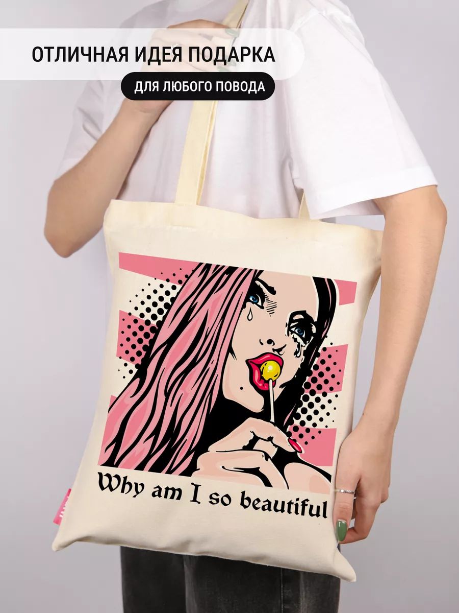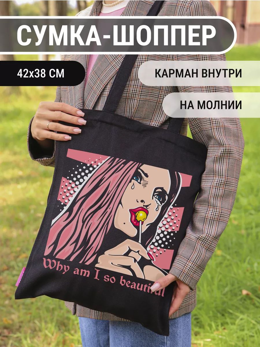 Прочная сумка-шоппер женская через плечо из 100% органического хлопка (плотность 230-240 гр/м²). Размер: 35×39 см, длина ремня 35 см. Универсальный аксессуар для повседневных дел и стильных образов.