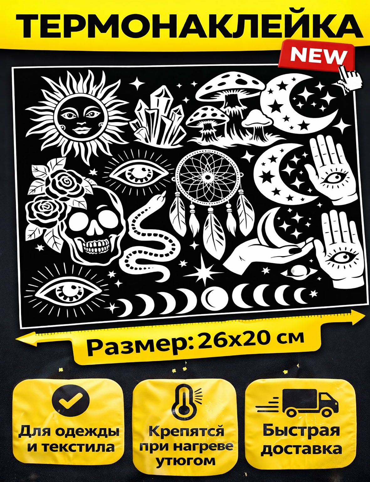 Самоклейки это как переводки или термо наклейки. Термоклеевая наклейка устойчива к стирке. Термонаклейка от бренда Yutti - это прекрасный способ добавить индивидуальность и стиль вашей детской и взрослой одежде.