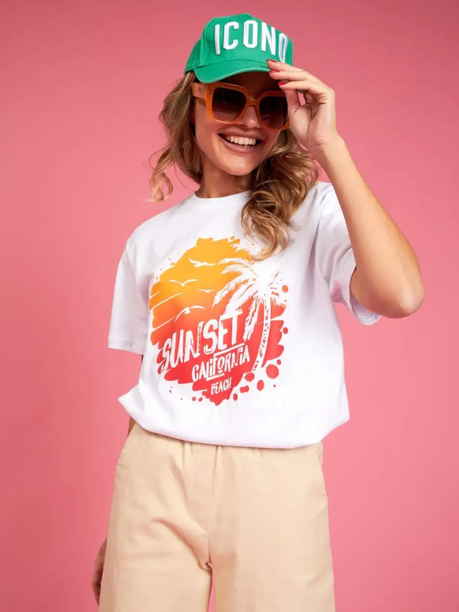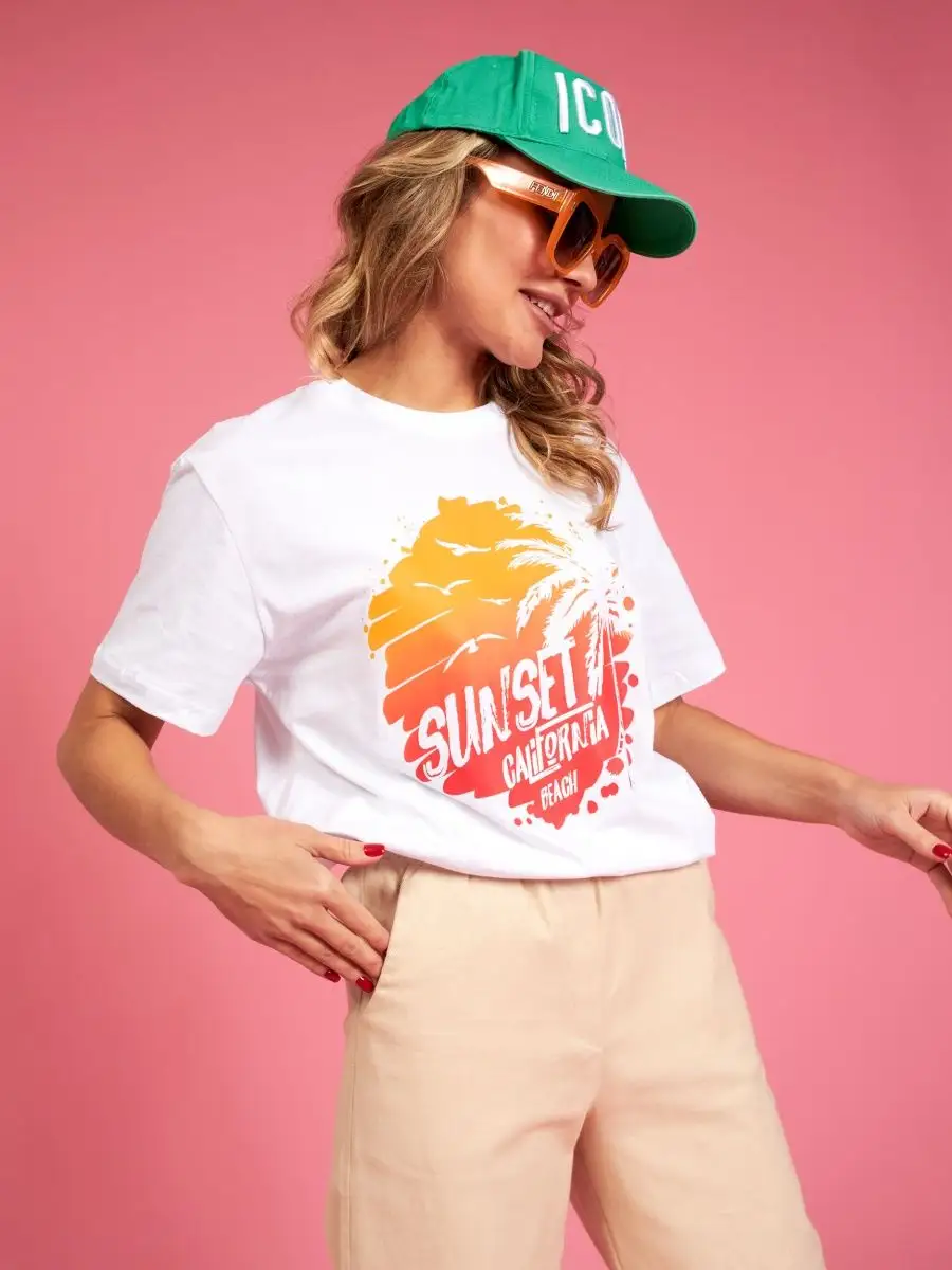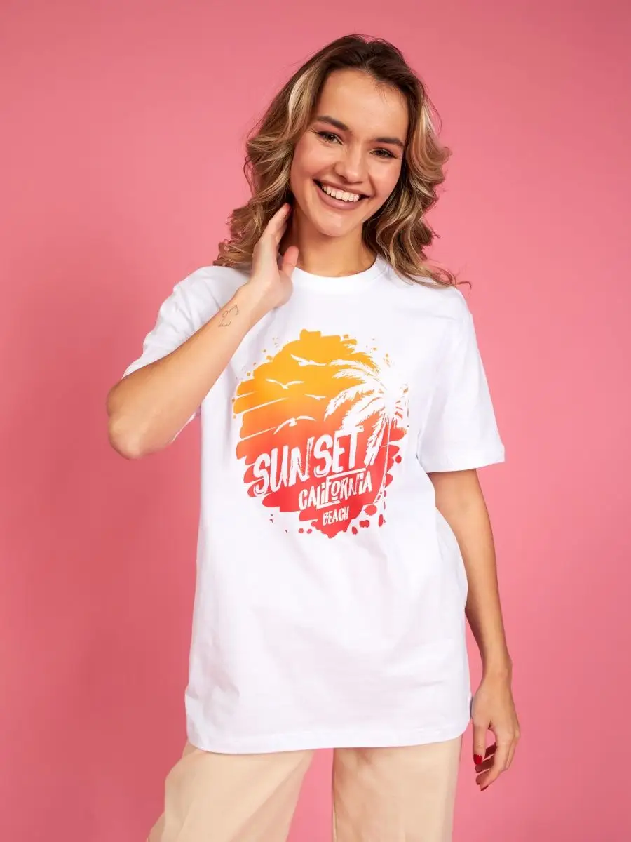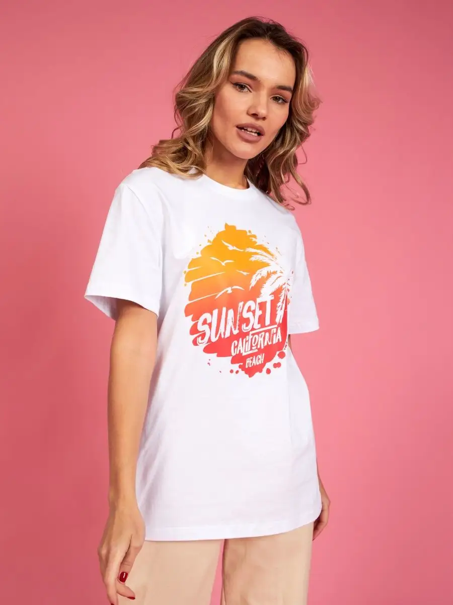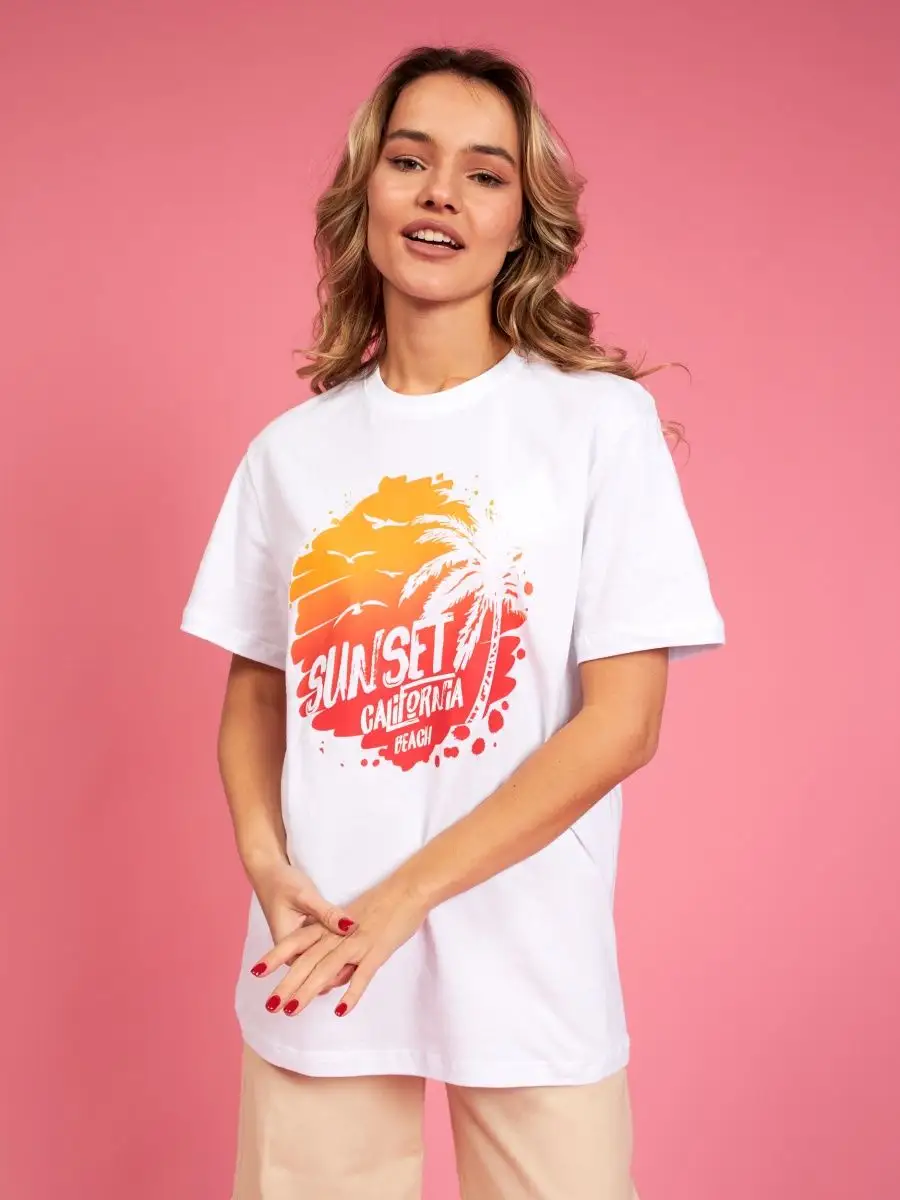 Мода в свободном стиле набирает обороты. В связи с этим наш бренд предлагает стильную футболку женскую оверсайз с принтом California ( Калифорния )футболка los angeles ( лос анджелес ). Молодежная одежда в стиле oversize имеет свободный крой. Базовая модная футболка с округлой горловиной, которая держит форму и со временем не растянется. Повседневная майка свободного кроя с удлиненным рукавом и со спущенным плечом. Cостав – хлопок средней плотности, актуален в любое время года. Ткань слегка тянется, хорошо пропускает воздух, подходит для повседневной носки. Футболка уместна для дома, спорта: фитнеса, гимнастики, йоги, бега, тренировок в зале и танцев, очень удобна для активного отдыха на природе, летом в качестве пляжной одежды для поездки на море, также можно сочетать с городским стилем. С помощью универсальной модели футболки oversize можно создать совершенно разные образы, скрыть недостатки фигуры и подчеркнуть достоинства. На контрасте объемной футболки вы будете выглядеть более стройной. Туника – платье подойдет подросткам, девочкам и девушкам любого роста: высоким и невысоким. Беременные и кормящие женщины могут носить как платье-футболку. Футболка единого размера, подойдет женщинам с размерами одежды от 42 до 56. Специально для вас действуют акции и распродажи, где можно купить наши товары со скидкой. Свободная футболка - уместный подарок на праздник девушке, сестре, дочери, подруге, маме, любимой.