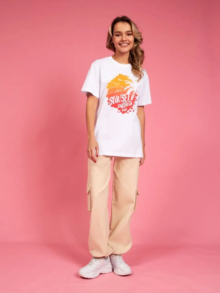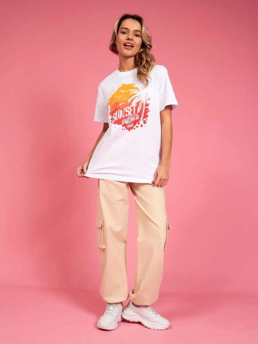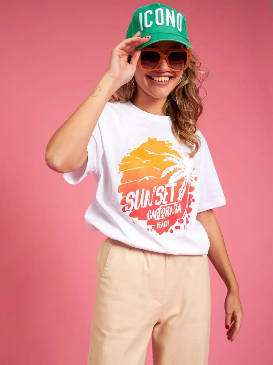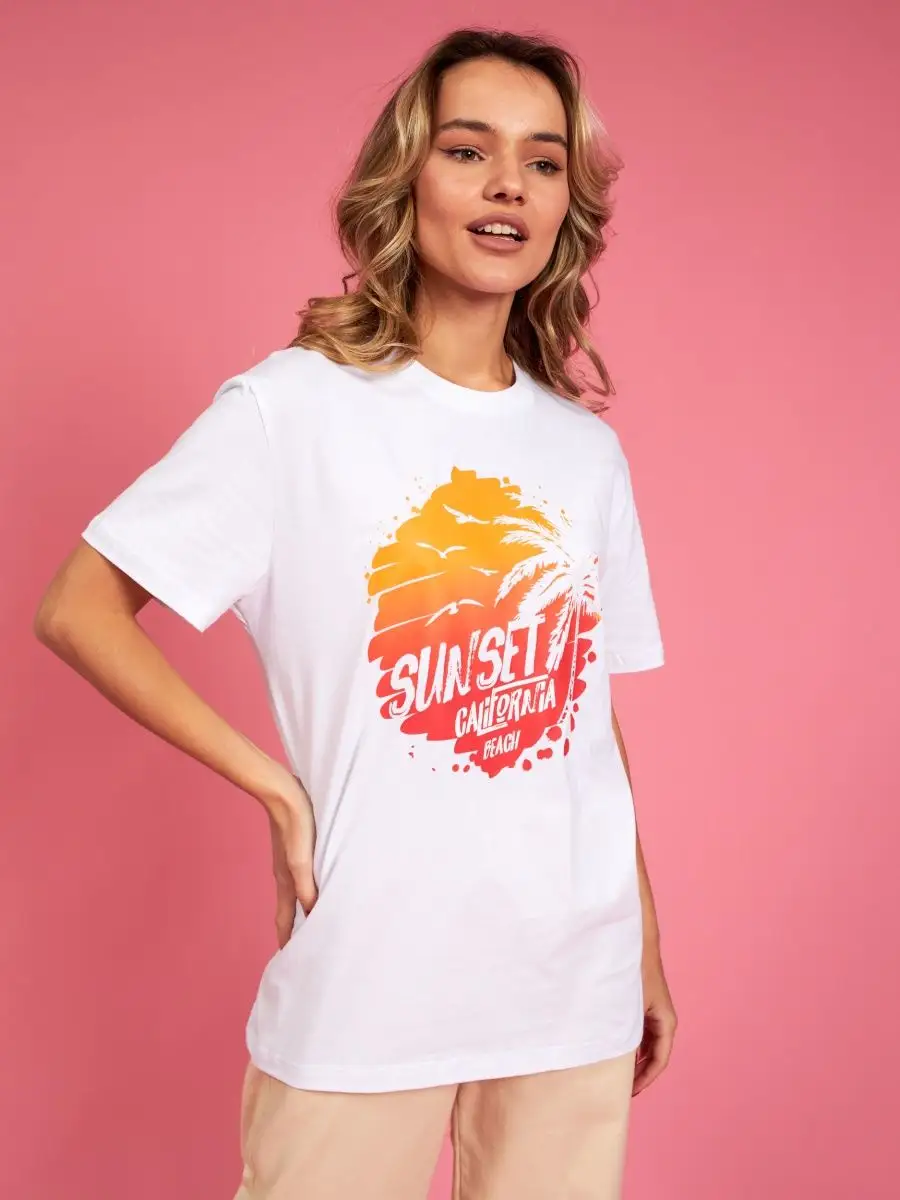 Мода в свободном стиле набирает обороты. В связи с этим наш бренд предлагает стильную футболку женскую оверсайз с принтом California ( Калифорния )футболка los angeles ( лос анджелес ). Молодежная одежда в стиле oversize имеет свободный крой. Базовая модная футболка с округлой горловиной, которая держит форму и со временем не растянется. Повседневная майка свободного кроя с удлиненным рукавом и со спущенным плечом. Cостав – хлопок средней плотности, актуален в любое время года. Ткань слегка тянется, хорошо пропускает воздух, подходит для повседневной носки. Футболка уместна для дома, спорта: фитнеса, гимнастики, йоги, бега, тренировок в зале и танцев, очень удобна для активного отдыха на природе, летом в качестве пляжной одежды для поездки на море, также можно сочетать с городским стилем. С помощью универсальной модели футболки oversize можно создать совершенно разные образы, скрыть недостатки фигуры и подчеркнуть достоинства. На контрасте объемной футболки вы будете выглядеть более стройной. Туника – платье подойдет подросткам, девочкам и девушкам любого роста: высоким и невысоким. Беременные и кормящие женщины могут носить как платье-футболку. Футболка единого размера, подойдет женщинам с размерами одежды от 42 до 56. Специально для вас действуют акции и распродажи, где можно купить наши товары со скидкой. Свободная футболка - уместный подарок на праздник девушке, сестре, дочери, подруге, маме, любимой.