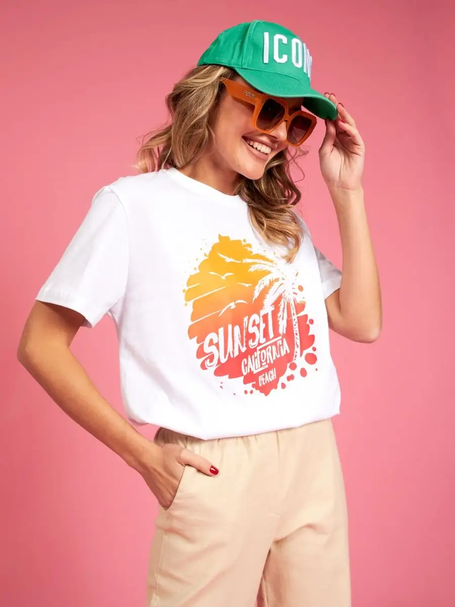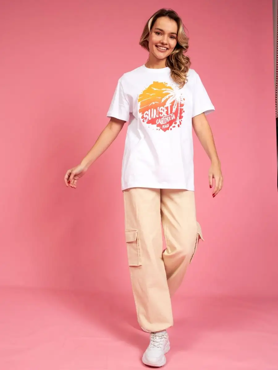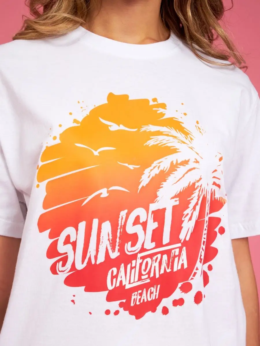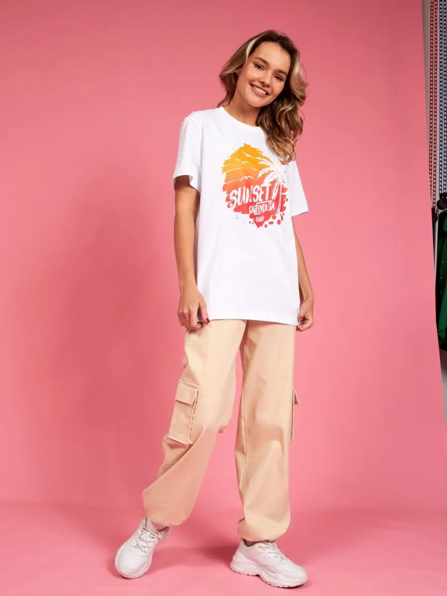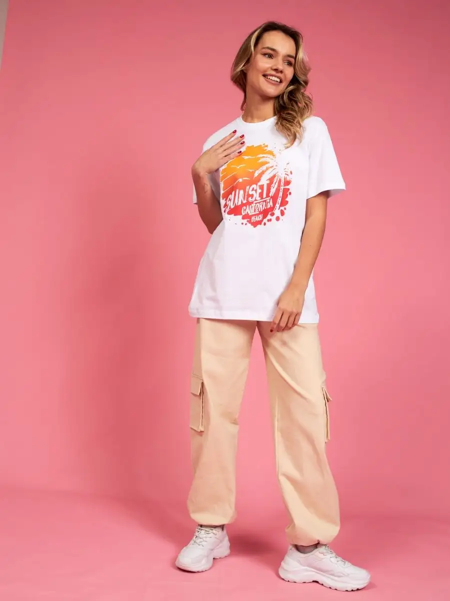 Мода в свободном стиле набирает обороты. В связи с этим наш бренд предлагает стильную футболку женскую оверсайз с принтом California ( Калифорния )футболка los angeles ( лос анджелес ). Молодежная одежда в стиле oversize имеет свободный крой. Базовая модная футболка с округлой горловиной, которая держит форму и со временем не растянется. Повседневная майка свободного кроя с удлиненным рукавом и со спущенным плечом. Cостав – хлопок средней плотности, актуален в любое время года. Ткань слегка тянется, хорошо пропускает воздух, подходит для повседневной носки. Футболка уместна для дома, спорта: фитнеса, гимнастики, йоги, бега, тренировок в зале и танцев, очень удобна для активного отдыха на природе, летом в качестве пляжной одежды для поездки на море, также можно сочетать с городским стилем. С помощью универсальной модели футболки oversize можно создать совершенно разные образы, скрыть недостатки фигуры и подчеркнуть достоинства. На контрасте объемной футболки вы будете выглядеть более стройной. Туника – платье подойдет подросткам, девочкам и девушкам любого роста: высоким и невысоким. Беременные и кормящие женщины могут носить как платье-футболку. Футболка единого размера, подойдет женщинам с размерами одежды от 42 до 56. Специально для вас действуют акции и распродажи, где можно купить наши товары со скидкой. Свободная футболка - уместный подарок на праздник девушке, сестре, дочери, подруге, маме, любимой.