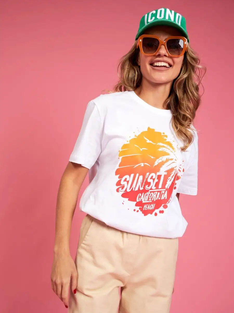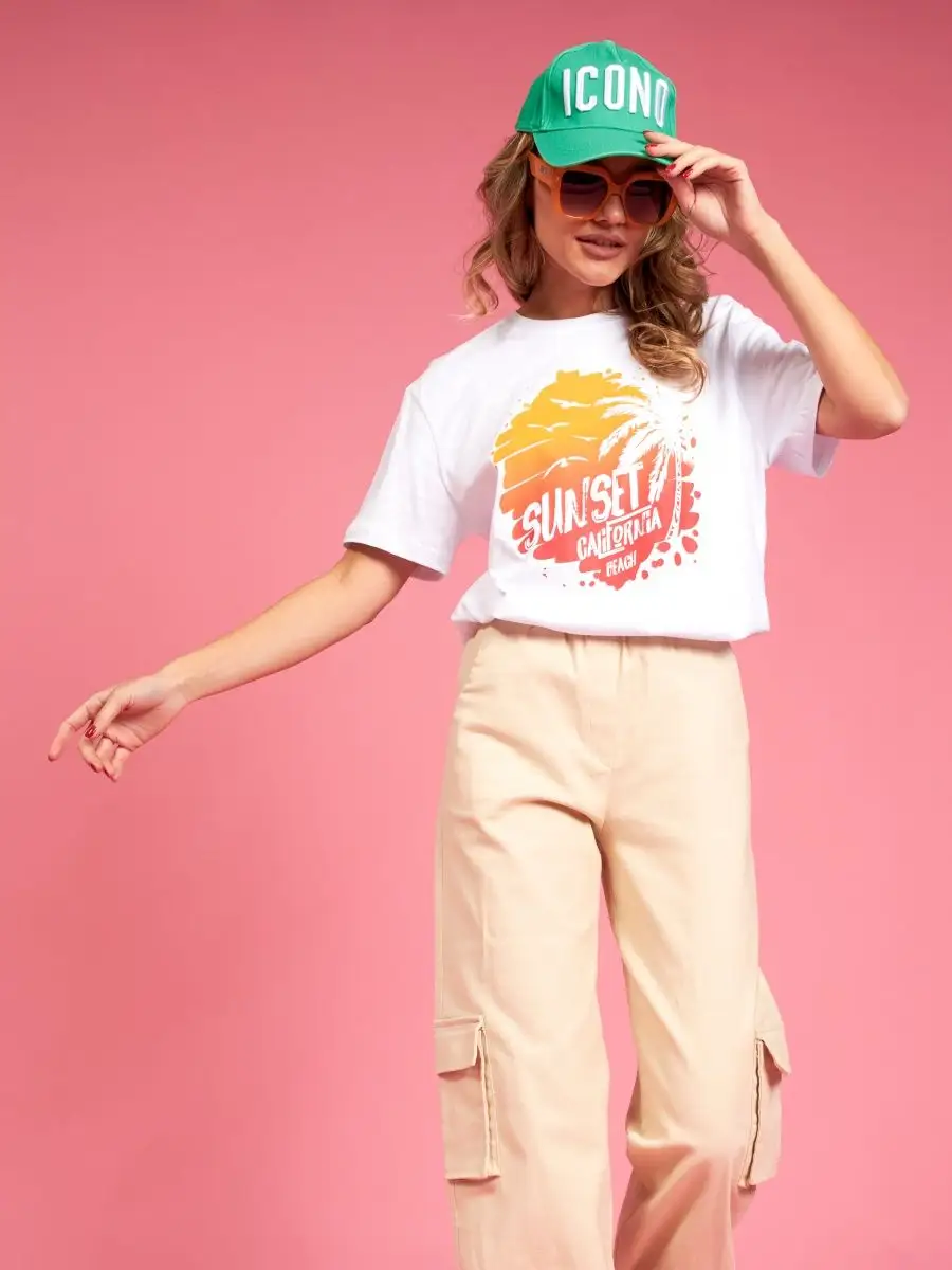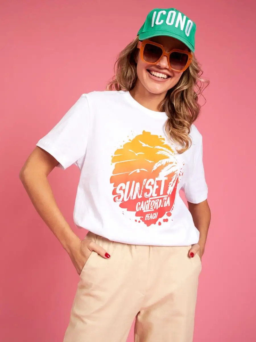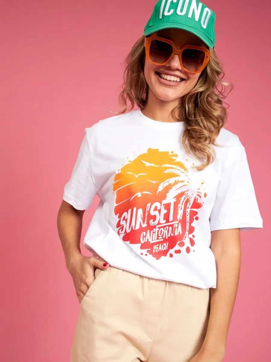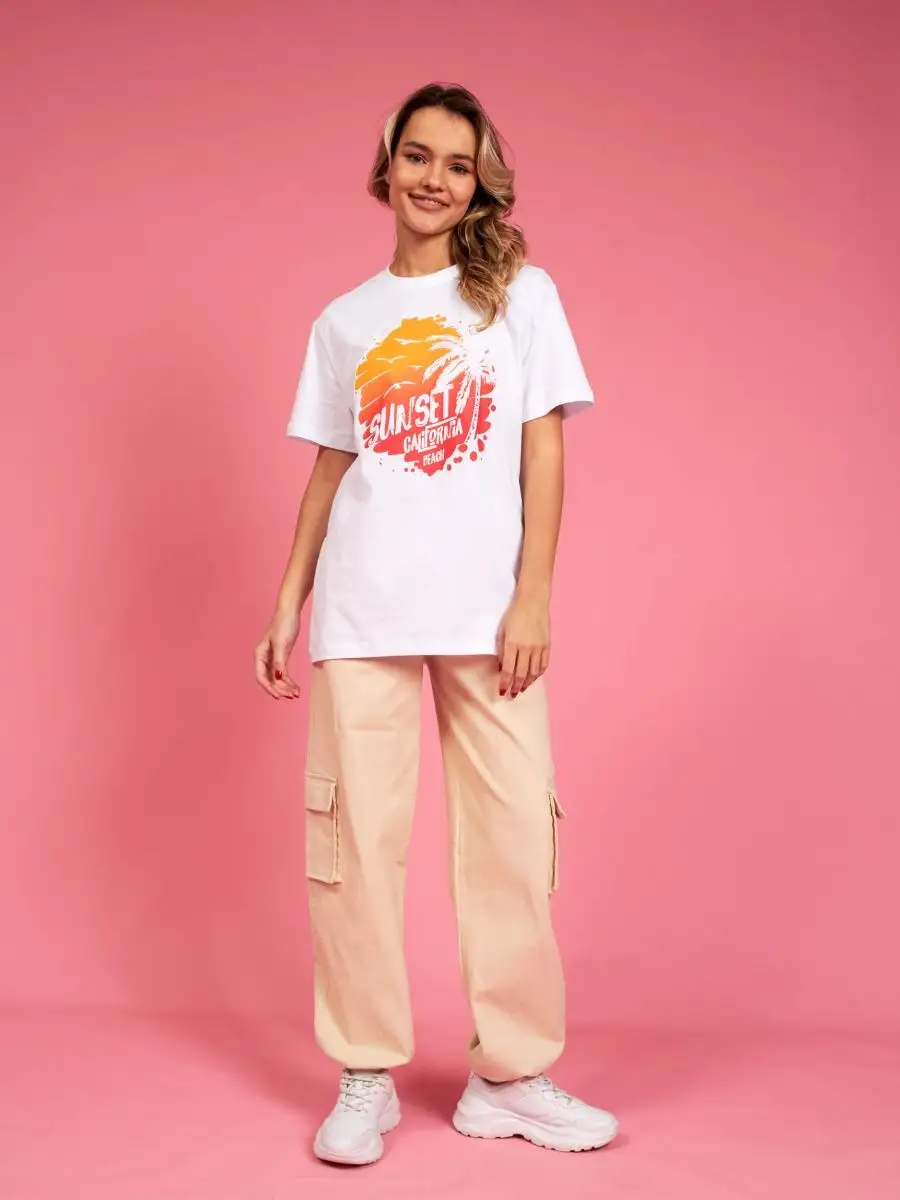 Мода в свободном стиле набирает обороты. В связи с этим наш бренд предлагает стильную футболку женскую оверсайз с принтом California ( Калифорния )футболка los angeles ( лос анджелес ). Молодежная одежда в стиле oversize имеет свободный крой. Базовая модная футболка с округлой горловиной, которая держит форму и со временем не растянется. Повседневная майка свободного кроя с удлиненным рукавом и со спущенным плечом. Cостав – хлопок средней плотности, актуален в любое время года. Ткань слегка тянется, хорошо пропускает воздух, подходит для повседневной носки. Футболка уместна для дома, спорта: фитнеса, гимнастики, йоги, бега, тренировок в зале и танцев, очень удобна для активного отдыха на природе, летом в качестве пляжной одежды для поездки на море, также можно сочетать с городским стилем. С помощью универсальной модели футболки oversize можно создать совершенно разные образы, скрыть недостатки фигуры и подчеркнуть достоинства. На контрасте объемной футболки вы будете выглядеть более стройной. Туника – платье подойдет подросткам, девочкам и девушкам любого роста: высоким и невысоким. Беременные и кормящие женщины могут носить как платье-футболку. Футболка единого размера, подойдет женщинам с размерами одежды от 42 до 56. Специально для вас действуют акции и распродажи, где можно купить наши товары со скидкой. Свободная футболка - уместный подарок на праздник девушке, сестре, дочери, подруге, маме, любимой.